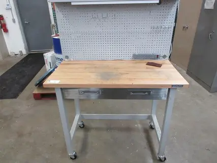 Lot 88: Portable Work Bench with Maple Top, Upper Shelf, Drawer, Work light Manufacturer: Seville Classics Model: Ultra HD Main Unit Approx Weight: 0.00 lbs Main Unit Dimensions (in inches): Length: 48.00" Width: 24.00" Height: 68.00" Seller Company: Superior Machine, Inc. Seller Contact: Machinesused.com SuperiorAuction Phone: (763) 745-1166 Item Location: Superior Machine, Inc., 3501 Raleigh Avenue, St Louis Park, MN 55416 Location Contact: Machinesused.com SuperiorAuction Phone: (763) 745-1166 Inspection Date & Time: Thursday-Friday, November 13-14, 2025 8AM to 4PM Dock Door: 118"' x 142" Ground Level Door Removal Dates and Times: This item must be removed between Monday, December 1, 2025 and Thursday, December 4, 2025