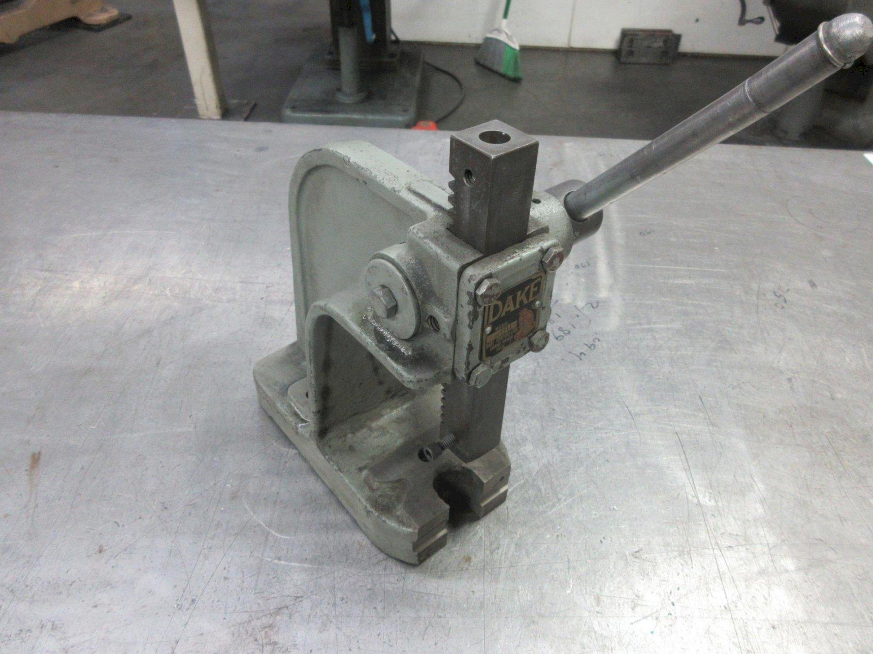 Lot 84: Dake #001 Arbor Press with 3.5" Throat, 5" Travel Manufacturer: Dake Model: 001 Main Unit Approx Weight: 0.00 lbs Main Unit Dimensions (in inches): Length: 8.50" Width: 6.00" Height: 10.00" Specs: Seller Company: Aljon Tool, Inc. Seller Contact: Machinesused.com Aljon Phone: (763) 745-1166 Item Location: Aljon Tool, Inc., 15700 28th. Ave. No., Plymouth, MN 55447 Location Contact: Machinesused.com Aljon Phone: (763) 745-1166 Inspection Date & Time: Thursday-Friday, February 19-20, 2026 9AM-4PM Dock Door: 12' x 14' H Door Ground Level Doors Loading Dock: Ground Level and Truck Cock Level Doors Removal Dates and Times: This item must be removed between Monday, March 2, 2026 and Friday, March 6, 2026