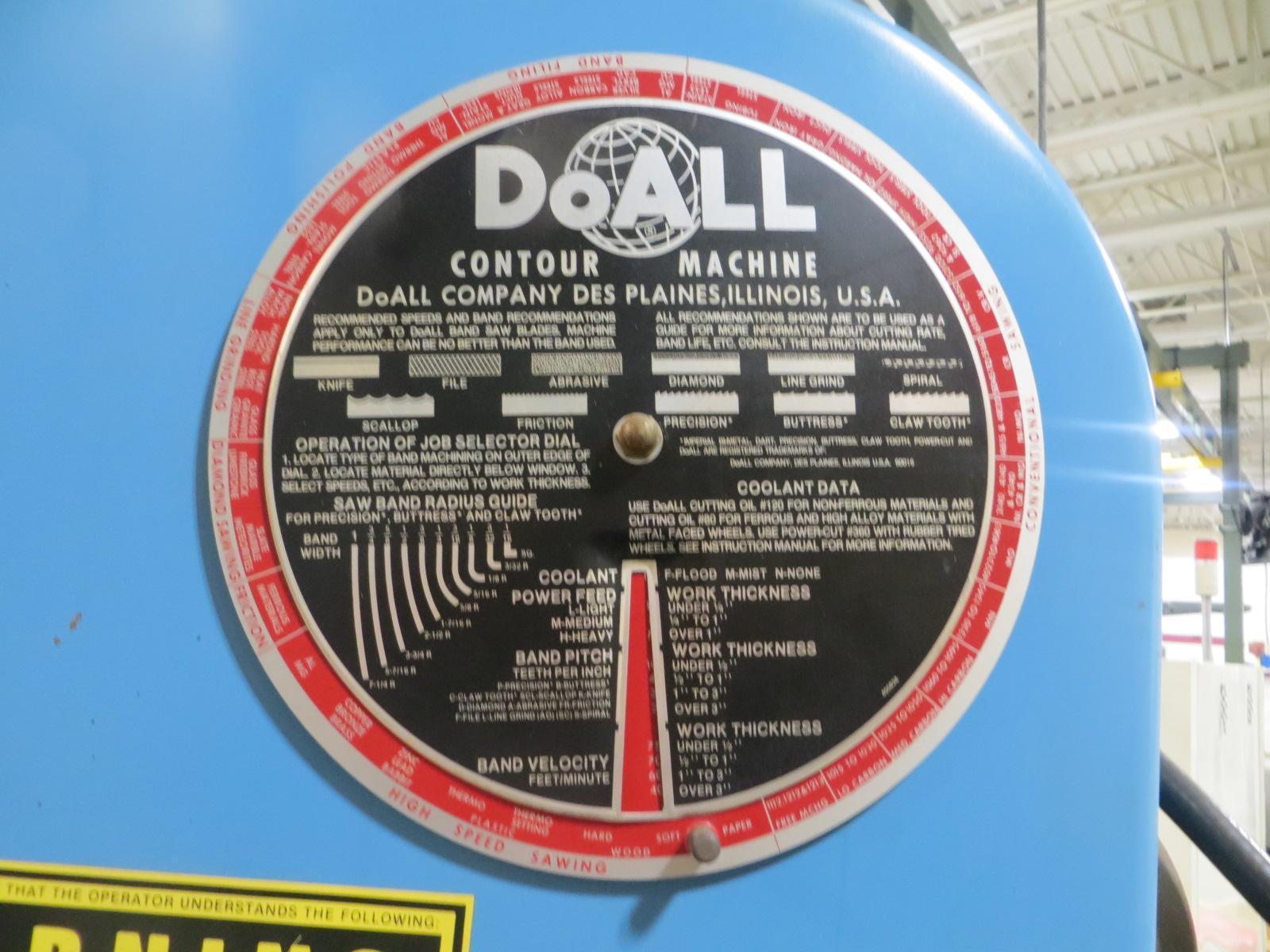 Lot 35: DoAll 3613-1 Vertical Band Saw, 36" Throat, 30-1/2" x 24" Table, Work Light Equipped With: 36" Throat, 30-1/2" x 24" Table, Work Light Electrics: 230 Volt, 3 Phase Manufacturer: DoAll Model: 3613-1 Year: 1998 Serial Number: 440-98775 Main Unit Approx Weight: 0.00 lbs Main Unit Dimensions (in inches): Length: 75.00" Width: 40.00" Height: 80.00" Specs: Throat: 36" Max Work Height: 13" Blade Size: 175" x 1" Table Size: 30-1/2" x 24" Band Speeds: Variable 50 -5200 FPM (2 Ranges) Seller Company: Hennepin Technical College Seller Contact: CRAIG BARRINGER Phone: (320) 293-1184 Item Location: Hennepin Technical College, 9000 Brooklyn Blvd, Brooklyn Park, MN 55445 Location Contact: CRAIG BARRINGER Phone: (952) 995-1569 Inspection Date & Time: By Appointment Normal Business Hours Monday-Friday Dock Door: 14' x 14' Door, Ground Level, Paved Lot Removal Dates and Times: This item must be removed between Tuesday, December 2, 2025 and Friday, December 12, 2025