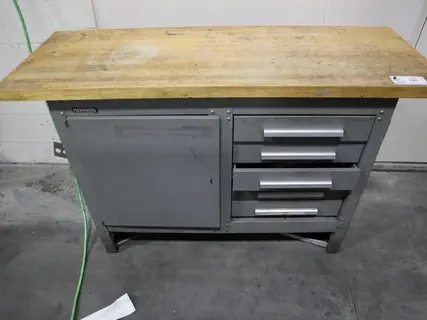 Lot 101: Kennedy Maple Top Work Bench, (5) Drawers, Cabinet Base Manufacturer: Kennedy Model: Work Bench Main Unit Approx Weight: 0.00 lbs Main Unit Dimensions (in inches): Length: 54.00" Width: 20.00" Height: 35.00" Seller Company: Aljon Tool, Inc. Seller Contact: Machinesused.com Aljon Phone: (763) 745-1166 Item Location: Aljon Tool, Inc., 15700 28th. Ave. No., Plymouth, MN 55447 Location Contact: Machinesused.com Aljon Phone: (763) 745-1166 Inspection Date & Time: Thursday-Friday, February 19-20, 2026 9AM-4PM Dock Door: 12' x 14' H Door Ground Level Doors Loading Dock: Ground Level and Truck Cock Level Doors Removal Dates and Times: This item must be removed between Monday, March 2, 2026 and Friday, March 6, 2026