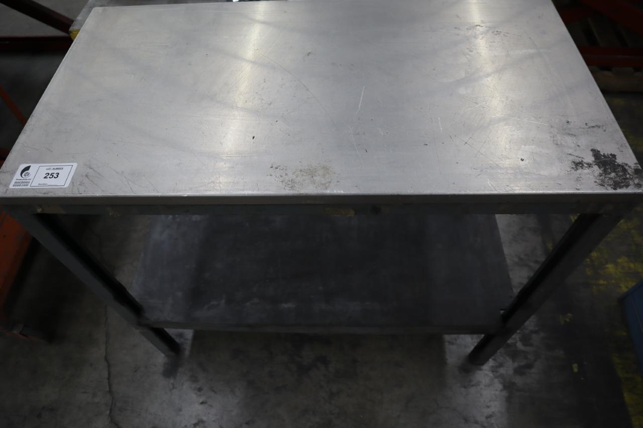 Lot 253: Metal Table w LOwer Shelf Manufacturer: Generic Model: Generic Main Unit Approx Weight: 0.00 lbs Main Unit Dimensions (in inches): Length: 40.50" Width: 21.50" Height: 35.00" Seller Company: Aljon Tool, Inc. Seller Contact: Machinesused.com Aljon Phone: (763) 745-1166 Item Location: Aljon Tool, Inc., 15700 28th. Ave. No., Plymouth, MN 55447 Location Contact: Machinesused.com Aljon Phone: (763) 745-1166 Inspection Date & Time: Thursday-Friday, February 19-20, 2026 9AM-4PM Dock Door: 12' x 14' H Door Ground Level Doors Loading Dock: Ground Level and Truck Cock Level Doors Removal Dates and Times: This item must be removed between Monday, March 2, 2026 and Friday, March 6, 2026