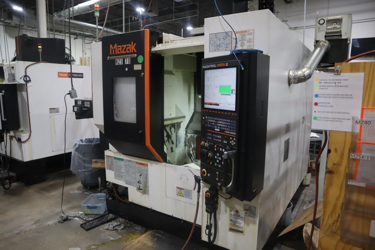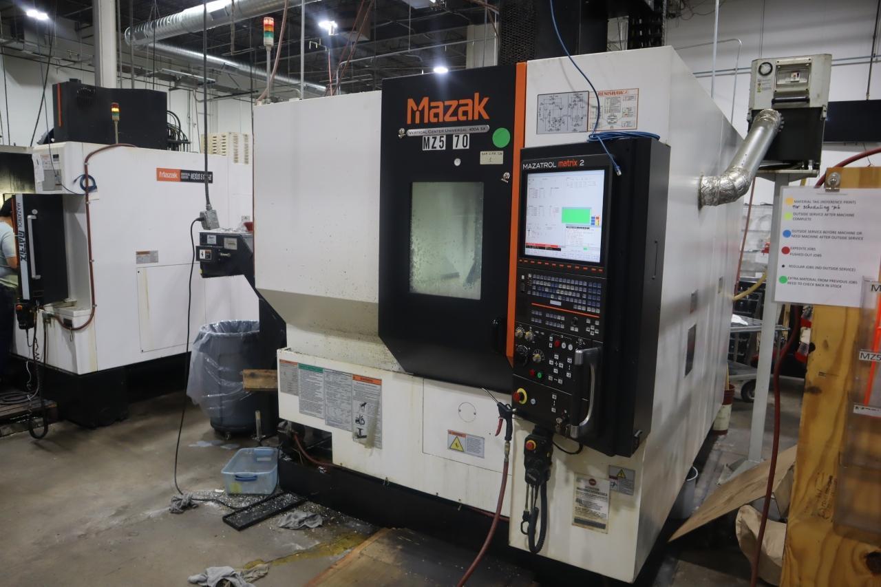 Lot 80: Mazak VCU-400A-5X 5-Axis CNC Vertical Machining Center, Mazatrol Matrix 2 CNC, 12K RPM, 30 ATC - New 2013 Equipped With: Mazatrol Matrix 2 CNC Control, 12000 RPM Spindle, Integrated 2-Axis Trunnion Table, CT 40 Taper, 12K RPM, 30 Station Tool Changer, Coolant System, Jorgensen Chip Conveyor, Remote Jog Handwheel, Renishaw Tool and Parts Probin System, USB Ports, LNS Mistcollector on Stand NOTE: Height dimension given is with head down for shipping Description: Used Mazak VCU 400A-5X CNC Vertical Machining Center for sale at Machinesused.com. This high-performance 5-axis machining center delivers precision, versatility, and productivity for complex part machining. Ideal for aerospace, medical, and precision engineering applications, the Mazak VCU 400A-5X features advanced Mazatrol control, rigid construction, and high-speed spindle performance. Buy, sell, or consign quality used Mazak CNC machines with Machinesused.com — your trusted source for used CNC equipment and online auctions. Electrics: 208 Volt, 3 Phase Manufacturer: Mazak Model: VCU-400A 5X Year: 2013 Serial Number: 248879 Main Unit Approx Weight: 16500.00 lbs Main Unit Dimensions (in inches): Length: 86.00" Width: 130.00" Height: 114.00" Components: Coolant Tank and Chip Conveyor: Length: 125.00" Width: 62.00" Height: 61.00" Mist Collector: Length: 104.00" Width: 20.00" Height: 20.00" Specs: Control: Mazatrol Matrix 2 CNC Control Machine Travels X/Y/Z: 21.65" x 15.75" x 20.08" Distance Spindle Nose to Platter: 4.53" - 24.61" 5-Axis Table Style: Integrated Trunnion 5th Axis Swivel (Tilt) Range: B Axis +95/ -45 Degrees Table Size: 15.75" Diameter Rapid Traverse X/Y/Z: 945 IPM Spindle Speeds: 12,000 RPM Max Spindle Speed Spindle Taper: CT40 Tool Changer Capacity: 30 Station Automatic Tool Changer Spindle Drive: 25 HP C-Axis Rotation: .0001 Degree Full C-Axis Max Tool Diameter: 3.15" / 4.92" w Adjacent Pockets Empty Max Table Load: 441 LBS. Seller Company: Quali-Mac Precision Machining Seller Contact: Machinesused.com Quali-Mac Phone: (763) 745-1166 Item Location: Quali-Mac Precision Machining, 9208 James Avenue South Suite #12, Bloomington, MN 55431 Location Contact: Machinesused.com Quali-Mac Phone: (763) 745-1166 Inspection Date & Time: By Appointment Normal Business Hours Monday-Friday Dock Door: Ground: 144"W x 144"H | Dock: 132"W x 144"H (47" Dock Height) Loading Dock: Ground and Truck Level Doors Removal Dates and Times: This item must be removed between Tuesday, December 9, 2025 and Wednesday, December 10, 2025