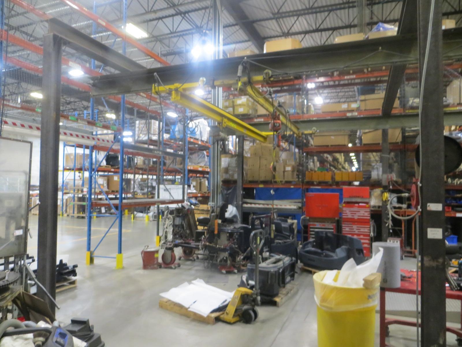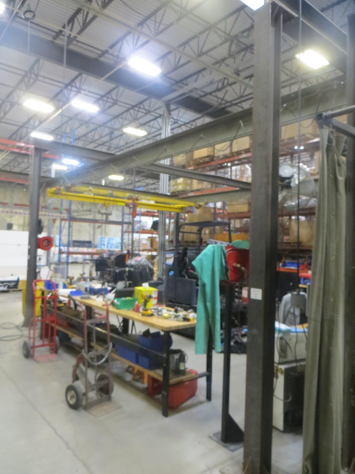 Lot 151: Overhead Shop Crane - Approx 34' X 24' area with (2) Single Girder Underslung Bridges, 1-CM Lodestar 1/2 Ton & 1-Duff Lynx 1/2 Ton Electric Hoists Equipped With: Approx 34' X 24' area with (1) 17' (approx.) Single Girder Underslung Bridge with CM Lodestar 1/2 Ton Electric Hoist & (1) Aero Material Handling 17' (approx.) Single Girder Underslung Bridge with Duff Lynx 1/2 Ton Electric Hoist, 98" Underneath The Hook (CM Lodestar 1/2 Ton), 101" Underneath The Hook (Duff Lynx 1/2 Ton). NOTE: REMOVAL BY APPOINTMENT ONLY - SEE BELOW FOR LIST OF SUGGESTED RIGGERS