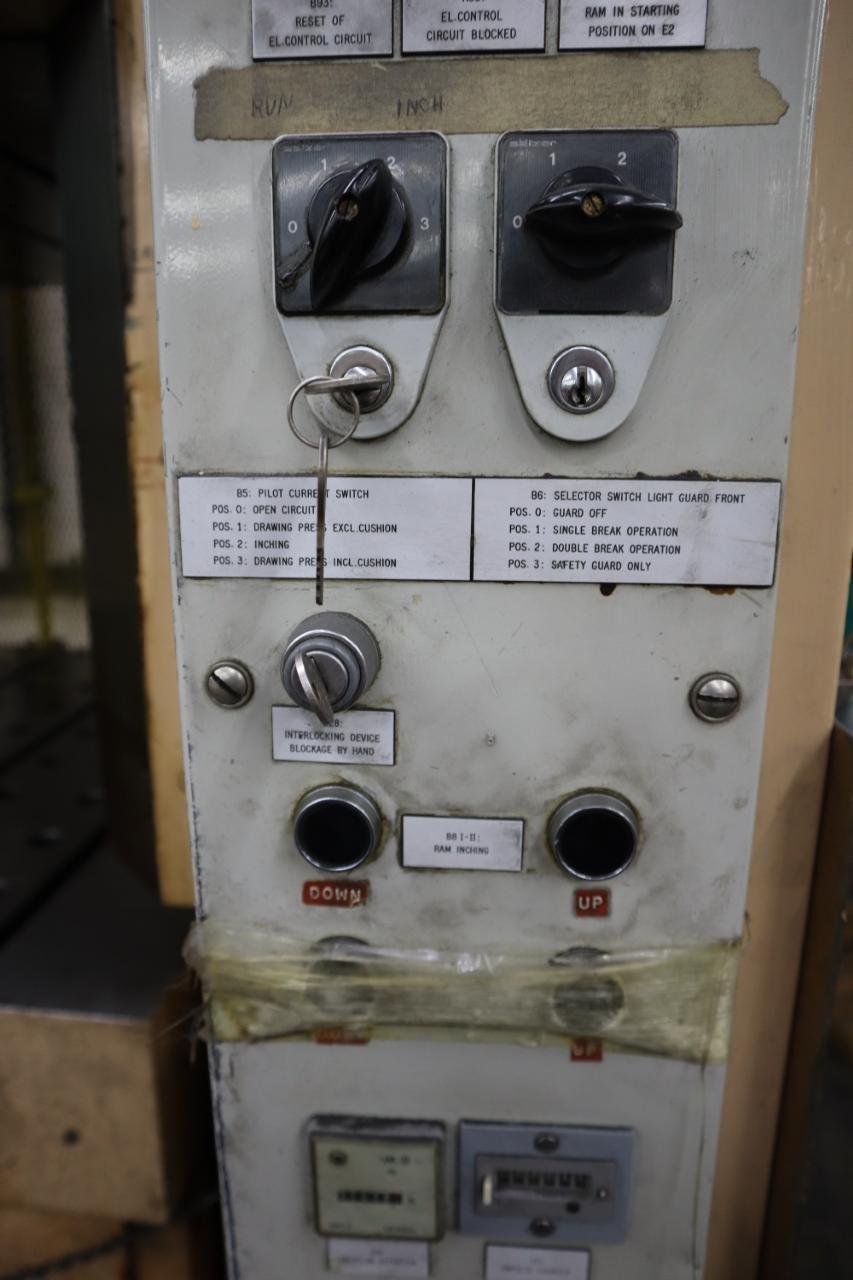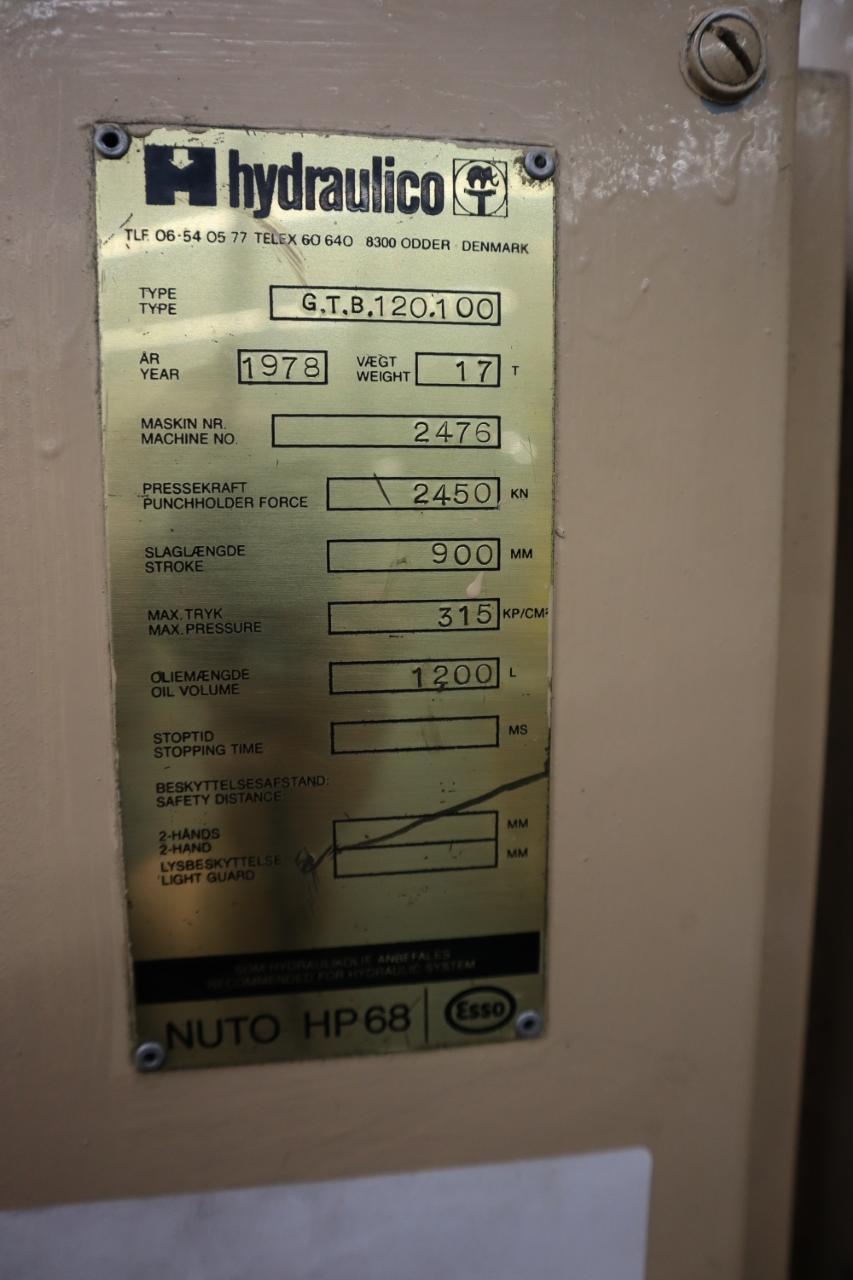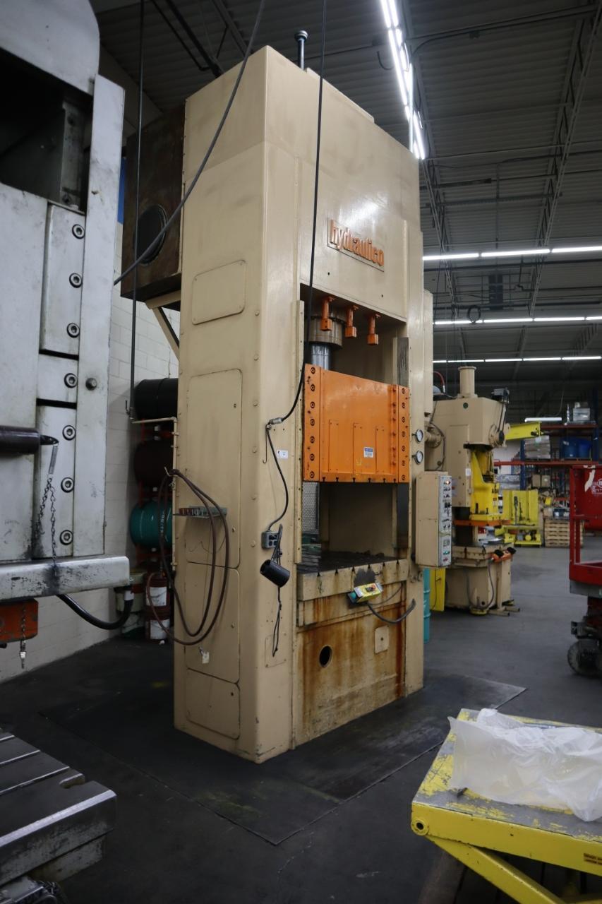 Lot 95: Hydraulico G.T.B.120.100 Hydraulic Press, 2450 kN (275 Tons), 900mm Stroke (35.4"), Air Cushion Equipped With: Push Button Controls, Front and Rear Dual Palm Butotns, 17" Pit Depth, Machine Height above Floor is 16'9", Built-In Air Cushion Electrics: 3 Phase Manufacturer: Hydraulico Model: G.T.B.120.100 Year: 1978 Serial Number: 2476 Main Unit Approx Weight: 34000.00 lbs Main Unit Dimensions (in inches): Length: 91.00" Width: 84.00" Height: 218.00" Specs: Capacity: 275 TOn Stroke: 900mm Bed Size: 52" x 39.25 Ram Size: 47" x 39.25" Seller Company: Aljon Tool, Inc. Seller Contact: Machinesused.com Aljon Phone: (763) 745-1166 Item Location: Aljon Tool, Inc., 15700 28th. Ave. No., Plymouth, MN 55447 Location Contact: Machinesused.com Aljon Phone: (763) 745-1166 Inspection Date & Time: Thursday-Friday, February 19-20, 2026 9AM-4PM Dock Door: 12' x 14' H Door Ground Level Doors Loading Dock: Ground Level and Truck Cock Level Doors Removal Dates and Times: This item must be removed between Monday, March 2, 2026 and Friday, March 6, 2026