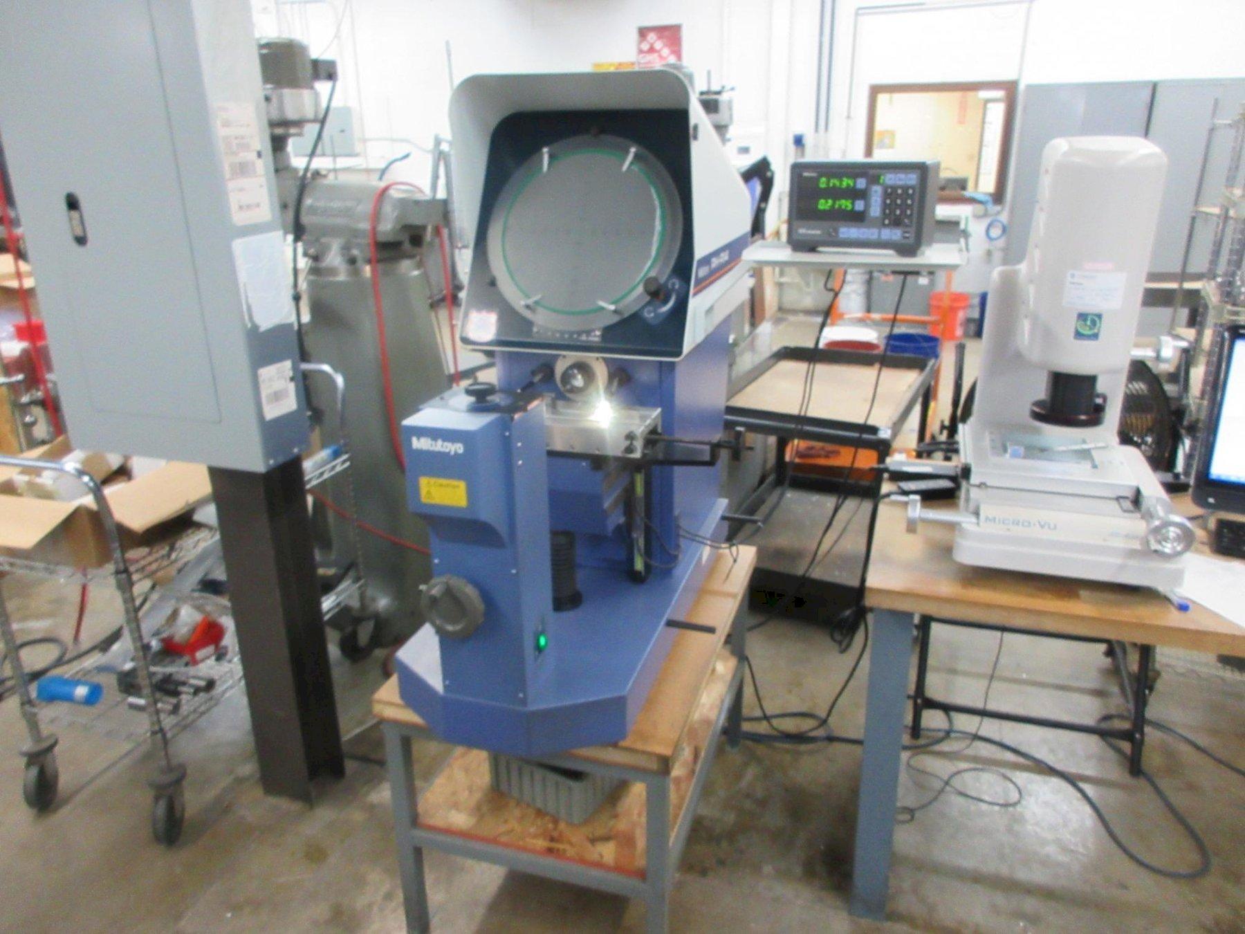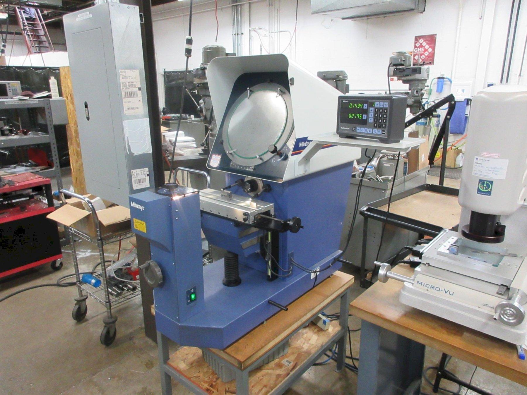 Lot 115: Mitutoyo Model PH-A14 Optical Comparator with KA-12 Counter DRO Equipped With: Mitutoyo KA Counter 2 Axis DRO Model KA-12 S/N 6327316 Electrics: 120V Single Phase Manufacturer: Mitutoyo Model: PH-A14 Serial Number: 7J7006 Main Unit Approx Weight: 0.00 lbs Main Unit Dimensions (in inches): Length: 50.00" Width: 38.00" Height: 46.00" Components: Metal and Wood Top Stand: Length: 36.00" Width: 24.00" Height: 24.00" Specs: Screen Size: 14" Diameter Stage Size: 6" x 16" Stage Illumination Style: Surface and Profile Illumination Measuring Range: 8" X Travel, 4" Y Travel, 2" Z Focus Digital Readout: QM Data 200 Microprocessor DRO Table Travel Longitudinal (X): 8" Vertical Travel: 4" Number of Lens Positions: 1 Seller Company: Superior Machine, Inc. Seller Contact: Machinesused.com SuperiorAuction Phone: (763) 745-1166 Item Location: Superior Machine, Inc., 3501 Raleigh Avenue, St Louis Park, MN 55416 Location Contact: Machinesused.com SuperiorAuction Phone: (763) 745-1166 Inspection Date & Time: Thursday-Friday, November 13-14, 2025 8AM to 4PM Dock Door: 118"' x 142" Ground Level Door Removal Dates and Times: This item must be removed between Monday, December 1, 2025 and Thursday, December 4, 2025
