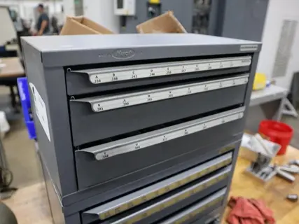 Lot 109: Huot Letter Stub Drill Index 3 Drawer with Contents Manufacturer: Generic Model: Generic Main Unit Approx Weight: 0.00 lbs Main Unit Dimensions (in inches): Length: 0.00" Width: 0.00" Height: 0.00" Seller Company: Superior Machine, Inc. Seller Contact: Machinesused.com SuperiorAuction Phone: (763) 745-1166 Item Location: Superior Machine, Inc., 3501 Raleigh Avenue, St Louis Park, MN 55416 Location Contact: Machinesused.com SuperiorAuction Phone: (763) 745-1166 Inspection Date & Time: Thursday-Friday, November 13-14, 2025 8AM to 4PM Dock Door: 118"' x 142" Ground Level Door Removal Dates and Times: This item must be removed between Monday, December 1, 2025 and Thursday, December 4, 2025