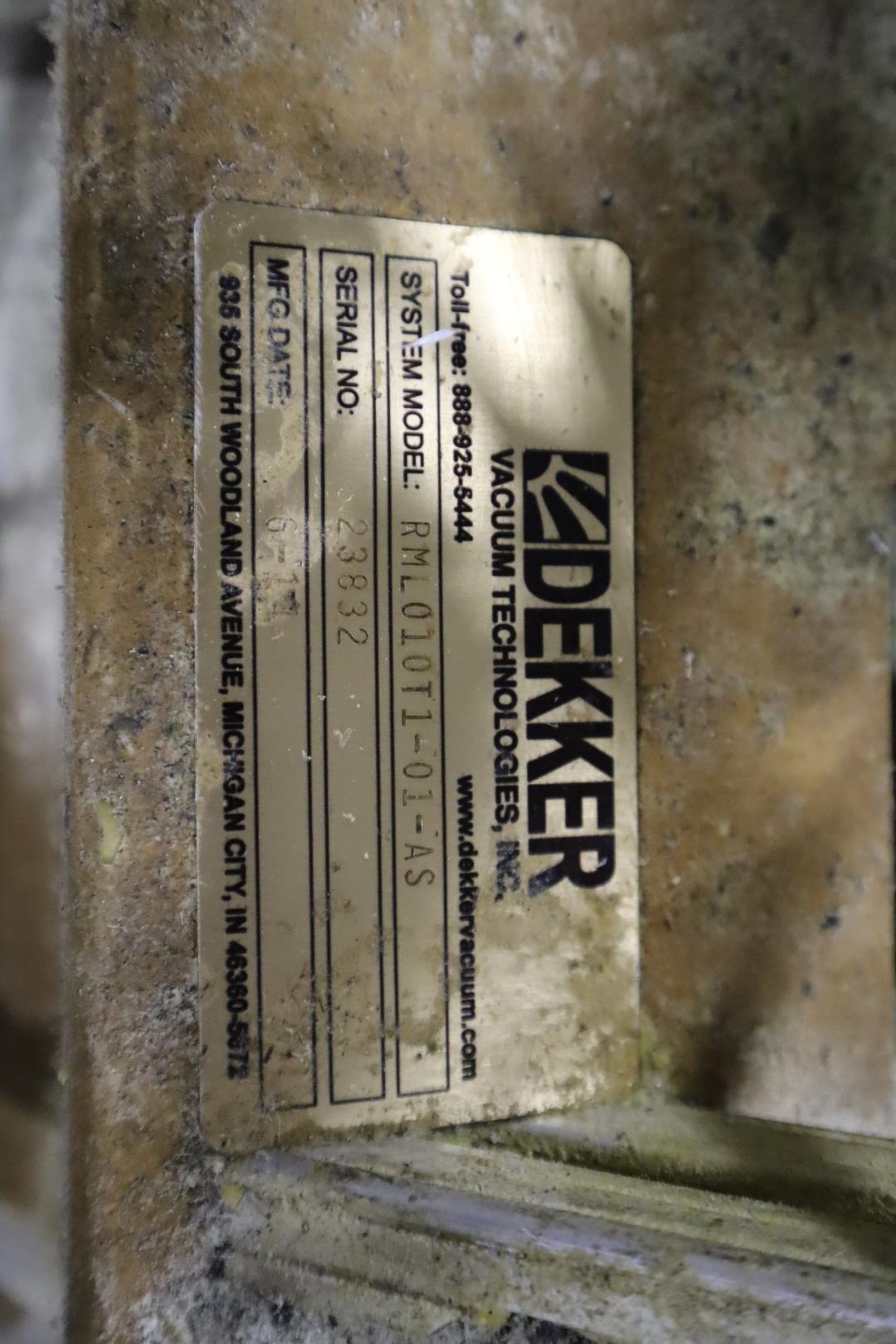 Lot 76: Dekker Vacuum Technologies RML010T1-01-AS Vacuum Pump Description: Dekker Vacuum Technologies RML010T1-01-AS Vacuum Pump With 28 Gallon Tank (Approximately), Manufacturer: Dekker Model: RML010T1-01-AS Main Unit Approx Weight: 145.00 lbs Main Unit Dimensions (in inches): Length: 44.00" Width: 21.00" Height: 34.00" Specs: Pump RVL010H: 3/4 HP, 8.5 CFM Control Box: Manual And Auto W/ Digital Meter Electrics : 120V 1 Phase Seller Company: Proto Labs Inc - Brooklyn Park Seller Contact: Machinesused.com December MultiShop Phone: (763) 745-1166 Item Location: Machinesused.com, 2410 Niagara Ln N, Plymouth, MN 55447 Location Contact: Machinesused.com December MultiShop Phone: (763) 745-1166 Inspection Date & Time: By Appointment Normal Business Hours Monday-Friday Dock Door: 14'x 14' and 18' x 14' Ground Level Doors Loading Dock: Ground Level Paved Lot Removal Dates and Times: This item must be removed between Tuesday, December 2, 2025 and Friday, December 12, 2025