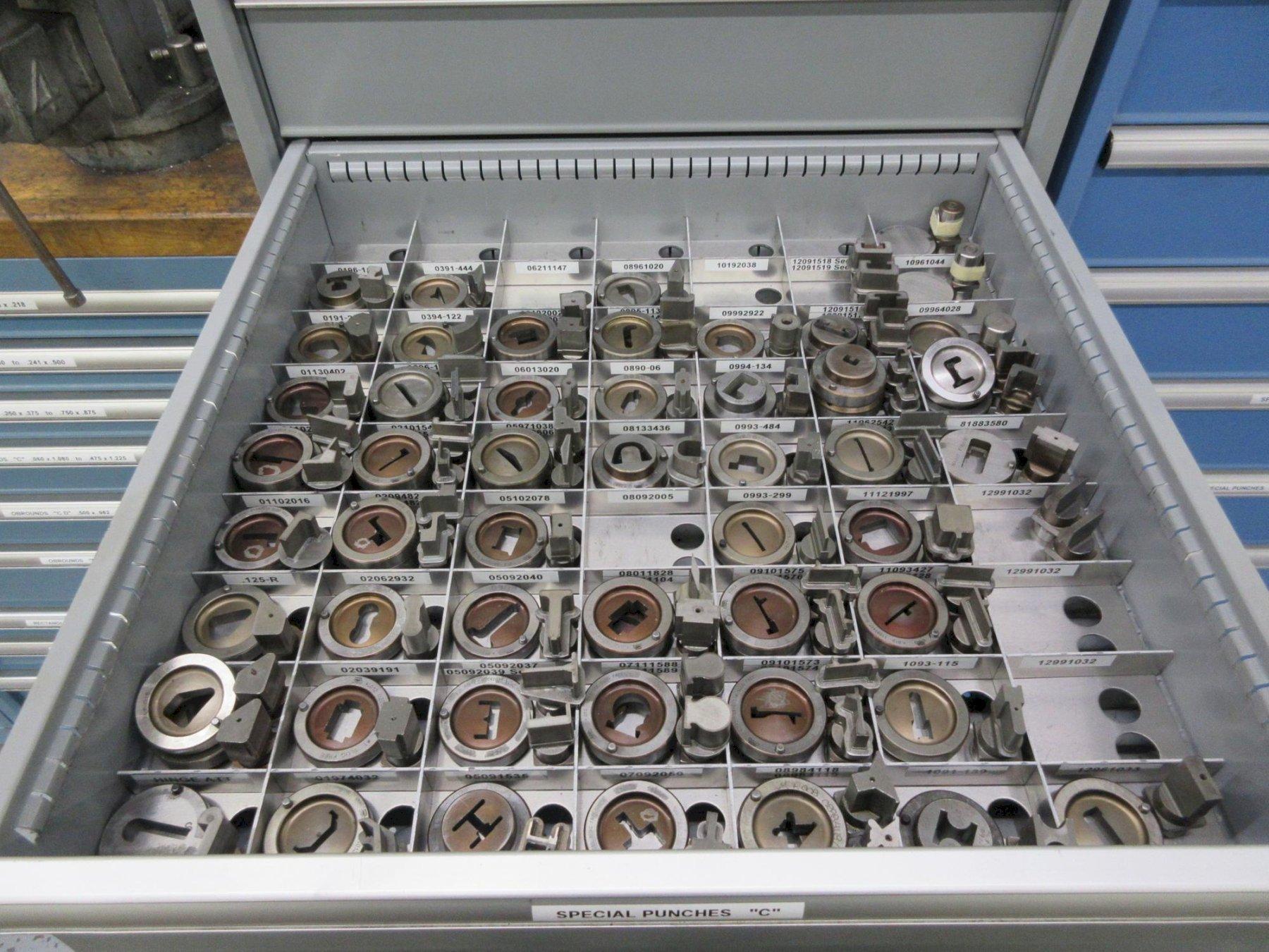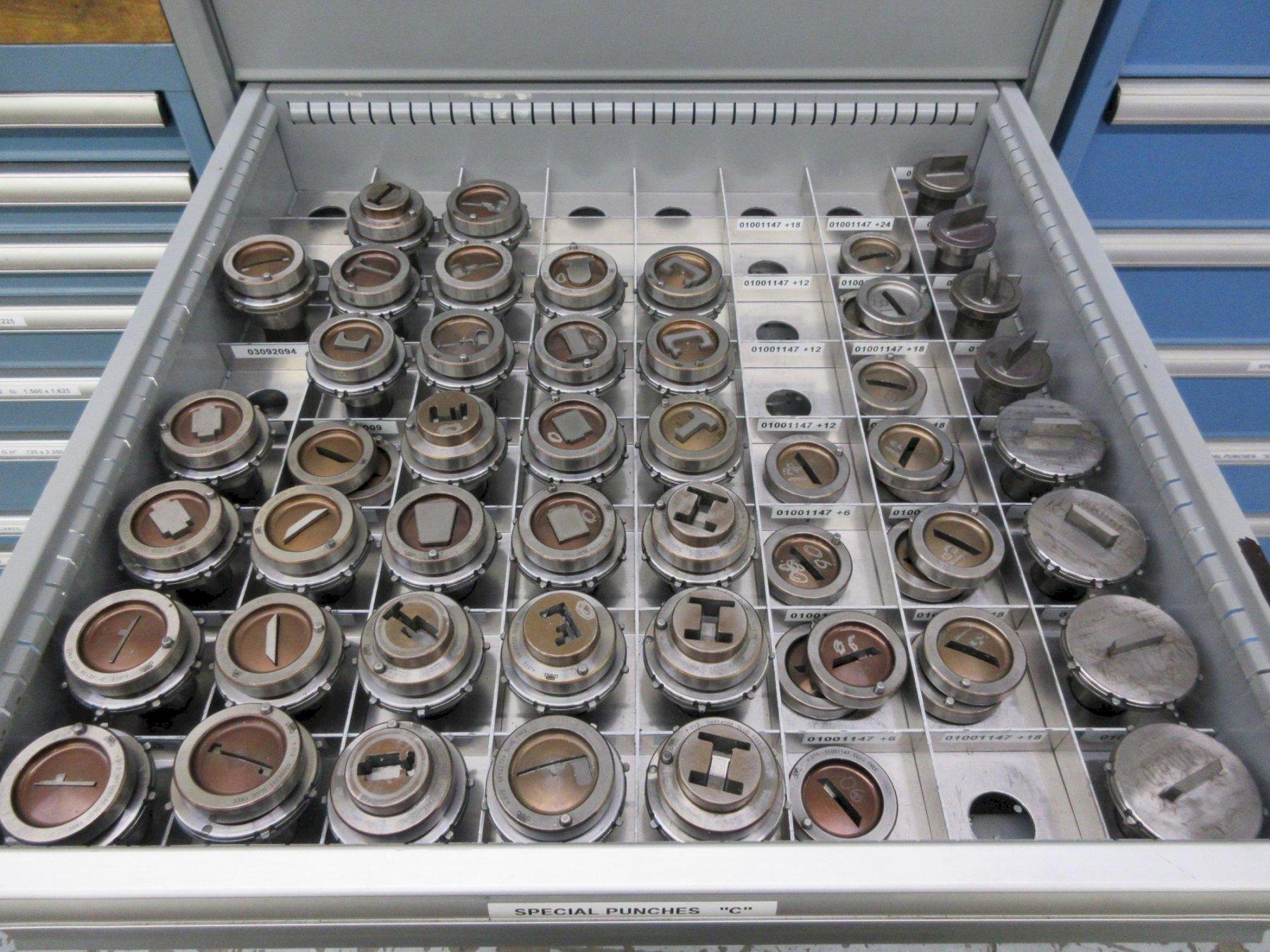 Lot 268: Lista Cabinet with 8 Drawers and Contents 112 Style and Marathon 112 Special Punches for CNC Turret Punch Manufacturer: Wiedemann Model: C3000 Main Unit Approx Weight: 0.00 lbs Main Unit Dimensions (in inches): Length: 28.00" Width: 29.00" Height: 60.00" Seller Company: Aljon Tool, Inc. Seller Contact: Machinesused.com Aljon Phone: (763) 745-1166 Item Location: Aljon Tool, Inc., 15700 28th. Ave. No., Plymouth, MN 55447 Location Contact: Machinesused.com Aljon Phone: (763) 745-1166 Inspection Date & Time: Thursday-Friday, February 19-20, 2026 9AM-4PM Dock Door: 12' x 14' H Door Ground Level Doors Loading Dock: Ground Level and Truck Cock Level Doors Removal Dates and Times: This item must be removed between Monday, March 2, 2026 and Friday, March 6, 2026