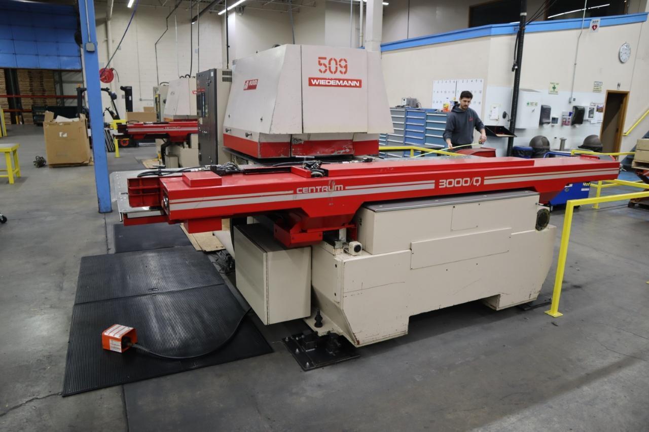CNC Control: Fanuc 00-P CNC Control Tonnage Capacity: 33 Tons Max Sheet Size: 50" x 80" Max Sheet Size with Repositioning: 50" x 157" Throat Depth: 50" Turret Stations: 54 Stations Stations With Auto-Index: 2 Auto Index Stations Max Strokes Per Minute: 220 HPM on 1" Centers Punching Rate: 475 HPM Nibbling Tooling Style: 112 and Marathon 112 Description: Murata Wiedemann Centrum 300 CNC Turret Punch—a reliable, high-speed machine designed for precision sheet metal punching. Featuring durable construction and advanced control for consistent performance. View photos, specs, and pricing at Machinesused.com Equipped With: Fanuc OOP Talkative PIII CNC Control, 54 Station Turret with (2) Auto Index Stations, Auto Sheet Repositioning, Turbo Slug Conveyor, Safety Area Matt, Remote Foot Trip, Manuals, 2-Sheet Grippers NOTE: THIS ITEM IS AVAILABLE FOR SALE PRIOR TO THE AUCTION CLICK HERE FOR QUOTATION Electrics: 200/220 Volt, 3 Phase |