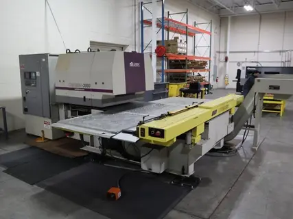 CNC Control: Fanuc 0-P CNC COntrol Tonnage Capacity: 33 Tons Max Sheet Size: 50" x 80" Max Sheet Size with Repositioning: 50" x 157" Throat Depth: 50" Turret Stations: 54 Stations Stations With Auto-Index: 2 Auto Index Stations Max Strokes Per Minute: 220/250 HPM on 1" Centers Turret Speed: 28 RPM Rotation Punching Rate: 490 HPM Continuous Max Sheet Positioning Speeds (X/Y): 2,500 IPM Tooling Style: 112 or Marathon 112 Description: Murata Wiedemann Centrum 300 CNC Turret Punch—a reliable, high-speed machine designed for precision sheet metal punching. Featuring durable construction and advanced control for consistent performance. View photos, specs, and pricing at Machinesused.com Equipped With: Fanuc OP CNC Control, 54 Station Turret with (2) Auto Index Stations, Auto Sheet Repositioning, Two Sheet Holders, Turbo Slug Conveyor NOTE: THIS ITEM IS AVAILABLE FOR SALE PRIOR TO THE AUCTION CLICK HERE FOR QUOTATION Electrics: 480 Volt, 3 Phase |