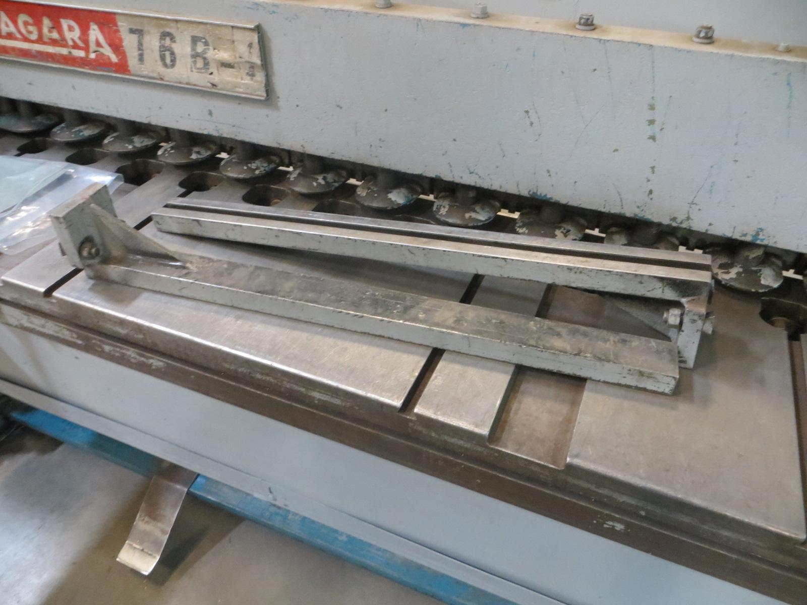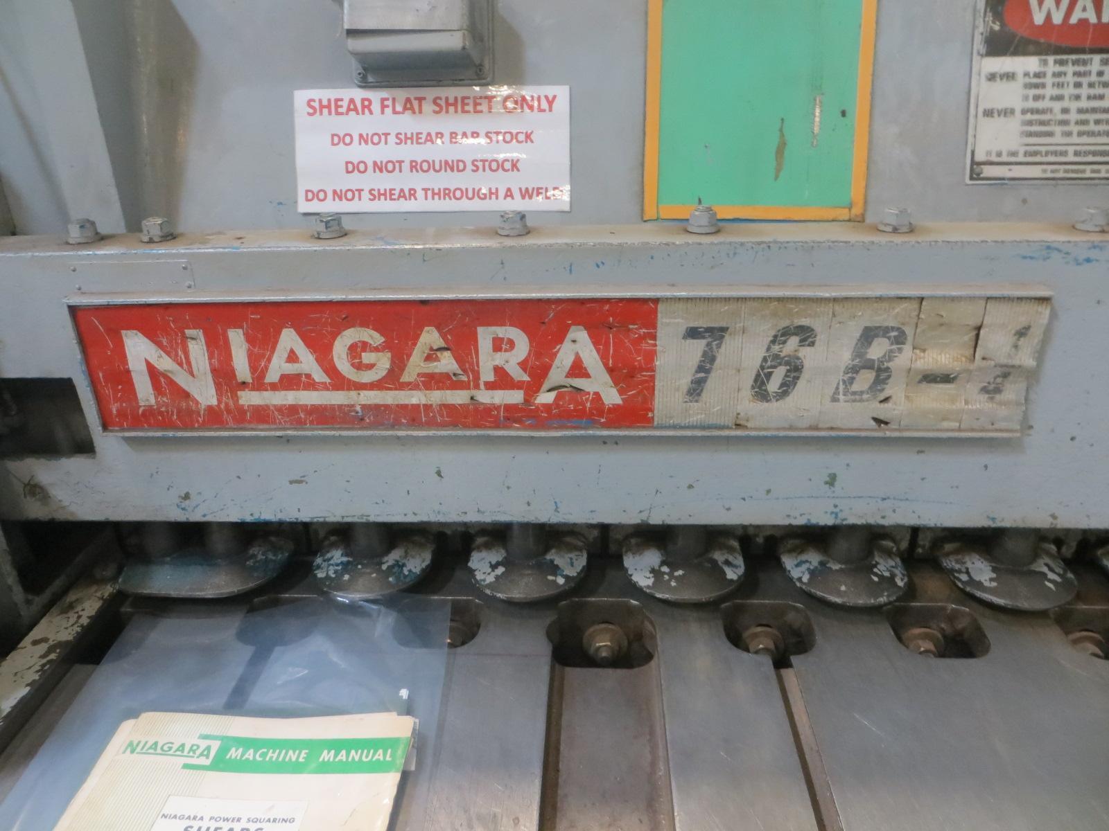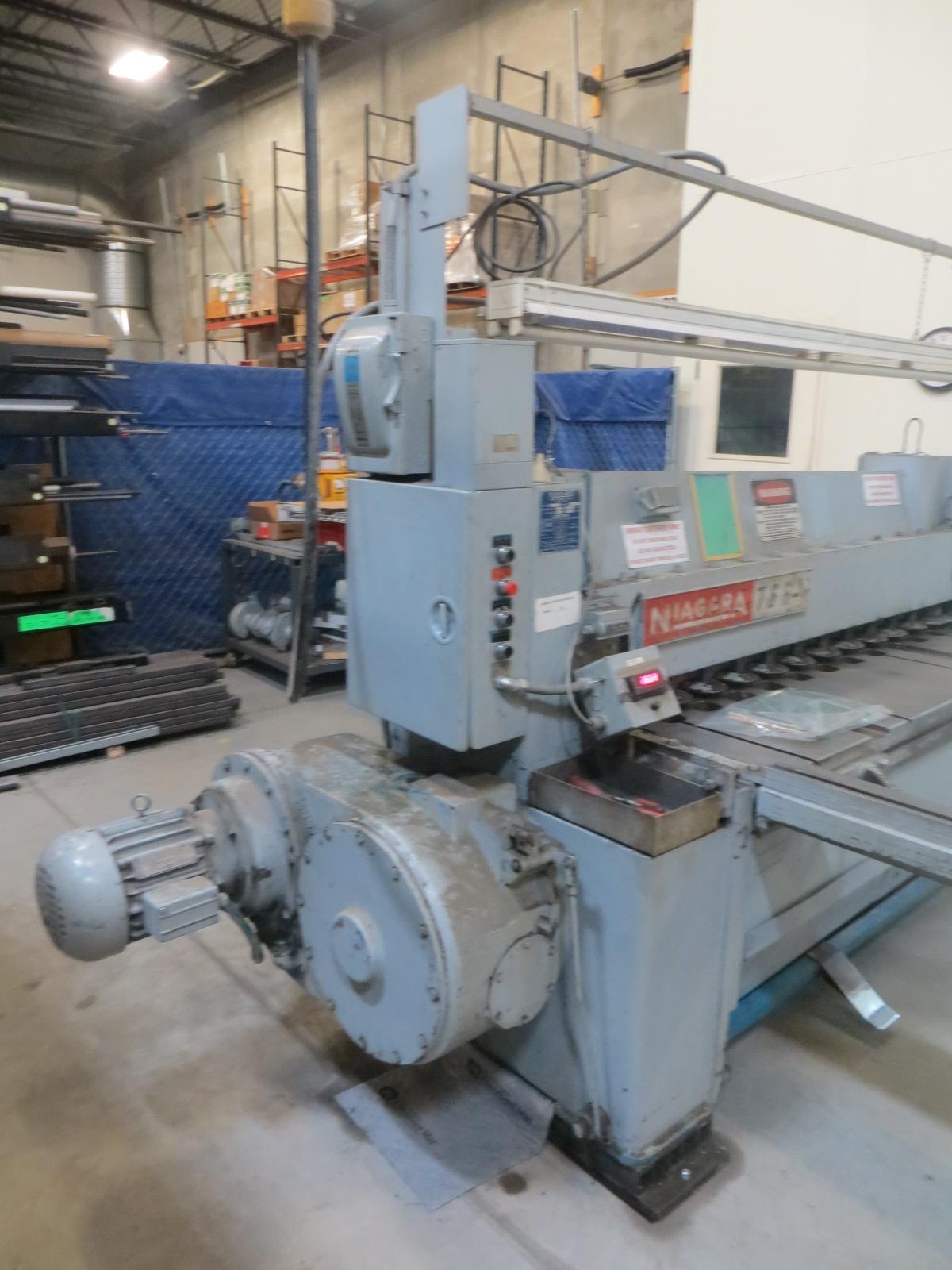 Lot 70: Niagara Model 76B 1/4 Power Squaring Shear with 5' Squaring Arm and 2-Front Sheet Supports Equipped With: 64" Squaring Arm, 12 Hold Downs, Work Counter, 5HP Motor, 2-Sheet Supports Electrics: 208-220/440, 3 Phase Manufacturer: Niagara Model: 76B 1/4 Serial Number: 62520 Main Unit Approx Weight: 10000.00 lbs Main Unit Dimensions (in inches): Length: 140.00" Width: 75.00" Height: 87.00" Components: Squaring Arm: Length: 65.00" Width: 9.00" Height: 36.00" Pan: Length: 34.00" Width: 54.00" Height: 12.00" Specs: Max Cutting Length: 6' Max Thickness Capacity (Mild Steel): 1/4" Seller Company: Nilfisk Inc Seller Contact: Machinesused.com NilfiskAuction Phone: (763) 745-1166 Item Location: Nilfisk Inc, 9435 Winnetka Ave N , Brooklyn Park, MN 55445 Location Contact: Machinesused.com NilfiskAuction Phone: (763) 745-1166 Inspection Date & Time: Friday, November 7, 2025 9AM-4PM Dock Door: 12' x 14' Ground Level Door Removal Dates and Times: This item must be removed between Monday, November 17, 2025 and Wednesday, November 19, 2025