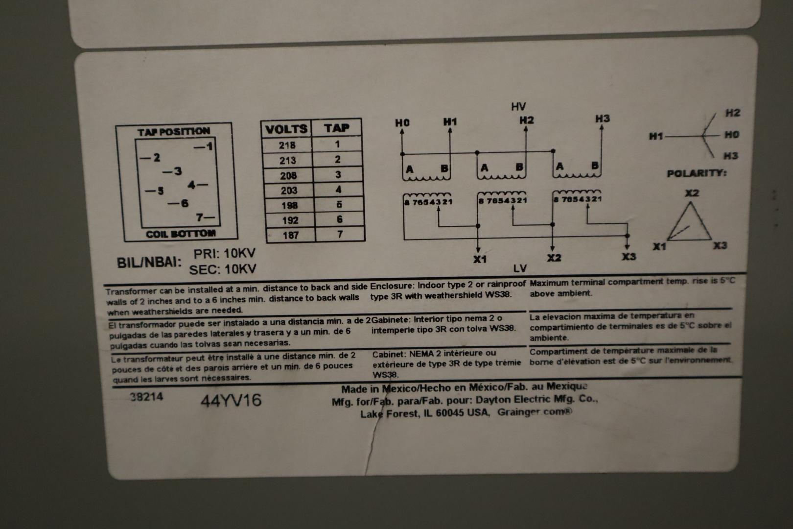Lot 48: Dayton Dry Type Distribution Transformer 44YV16 Electrics: Kva 30, Primary Volts 208. Secondary Volt 480Y/277 Manufacturer: Dayton Model: 44YV16 Main Unit Approx Weight: 402.00 lbs Main Unit Dimensions (in inches): Length: 25.00" Width: 21.00" Height: 37.00" Specs: Seller Company: Tech Financial Services, A Division of Five-Lakes Financial Seller Contact: Machinesused.com December Multishop Phone: (763) 745-1166 Item Location: Machinesused.com, 2410 Niagara Lane N., Plymouth, MN 55447 Location Contact: Machinesused.com December Multishop Phone: (763) 745-1166 Inspection Date & Time: By Appointment Normal Business Hours Monday-Friday Removal Dates and Times: This item must be removed between Tuesday, December 2, 2025 and Friday, December 12, 2025