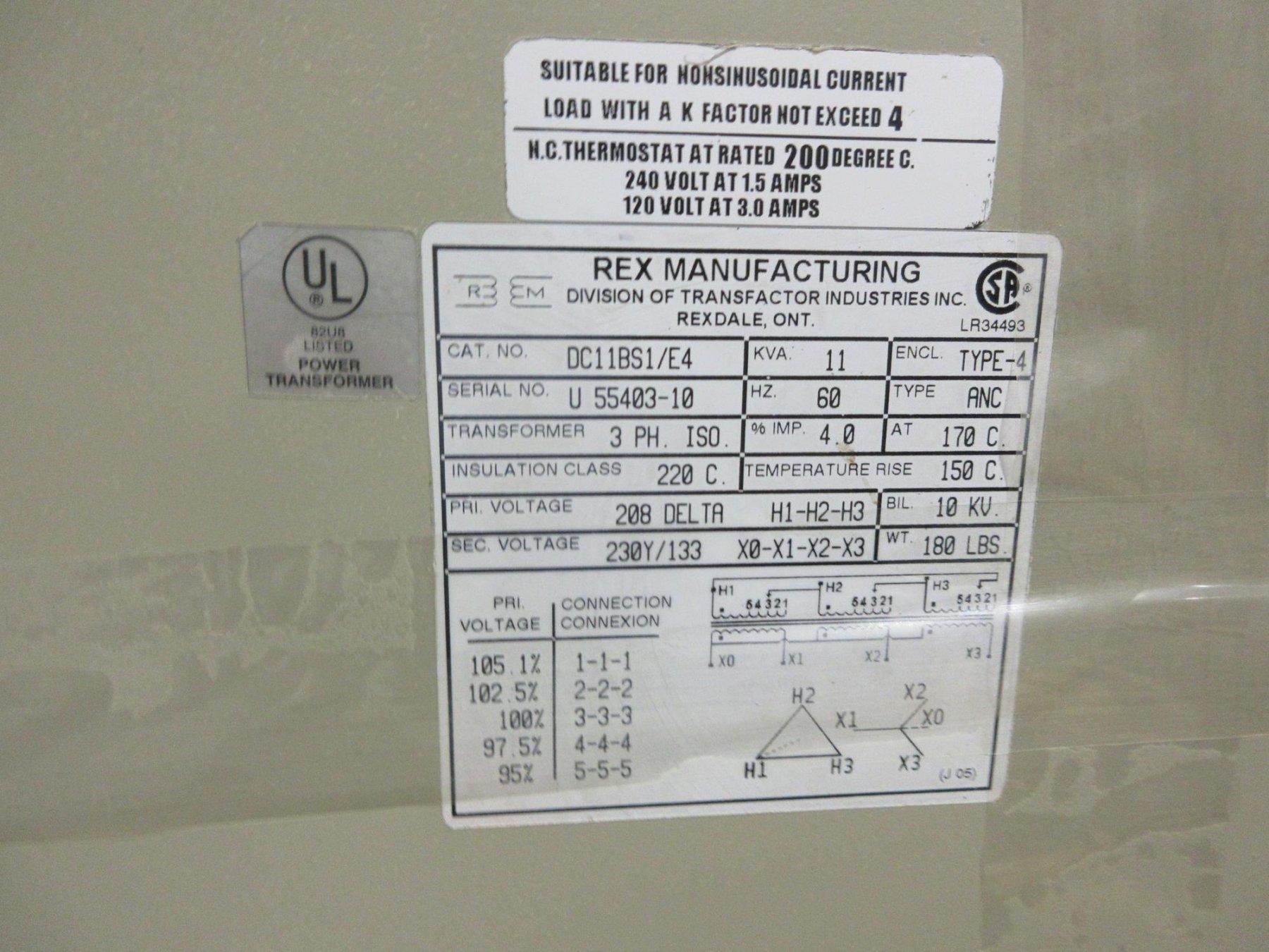 Lot 116: REX Manufacturing DC11BS1/E4 Transformer On Wheel Base Electrics: 3 Phase. Primary Voltage 208 Delta, Secondary Voltage 230Y/133 10KVA Manufacturer: REX Model: DC11BS1/E4 Main Unit Approx Weight: 180.00 lbs Main Unit Dimensions (in inches): Length: 26.00" Width: 20.00" Height: 31.00" Specs: Seller Company: Proto Labs Inc - Brooklyn Park Seller Contact: Machinesused.com December MultiShop Phone: (763) 745-1166 Item Location: Machinesused.com, 2410 Niagara Ln N, Plymouth, MN 55447 Location Contact: Machinesused.com December MultiShop Phone: (763) 745-1166 Inspection Date & Time: By Appointment Normal Business Hours Monday-Friday Dock Door: 14'x 14' and 18' x 14' Ground Level Doors Loading Dock: Ground Level Paved Lot Removal Dates and Times: This item must be removed between Tuesday, December 2, 2025 and Friday, December 12, 2025