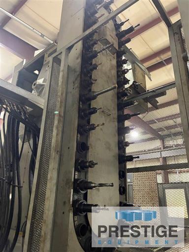 Spindle Diameter 5.31" Vertical Head Travel, Y-Axis 78.74" Table Cross Travel, X-Axis 118.11" Saddle Travel, W-Axis 62.99" Spindle Travel, Z-Axis 27.56" Table Size, Built in Rotary 78.74" x 70.86" Table Load Capacity 22,000 Lbs. Table Indexing, B-Axis 0.001 Degree Spindle Speeds: Inf. Variable 5-2000 RPM Spindle Taper CAT #50 Rapid Traverse 314.9 IPM Cutting Feed Rate 0.0393"-157.48" IPM Approximate Floor Space (L x W) 248.8" x 271.7" Approximate Height 189" Approximate Machine Weight 82,012 Lbs. Equipped With: Fanuc 16i-MB 4-Axis CNC Control 40-Position Automatic Tool Changer 78.74" x 70.86" B-Axis Rotary Table Full Enclosure Hardened Ways Sliding Steel Telescoping Way Covers Chip Conveyor Coolant Thru Spindle 30 HP/ 25 HP Spindle Drive Motor |