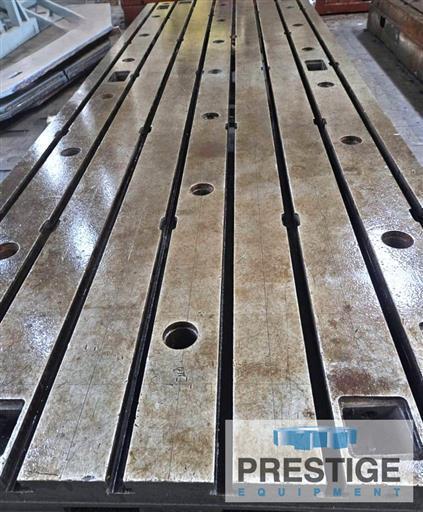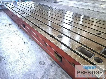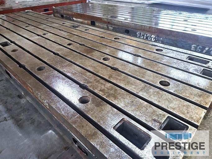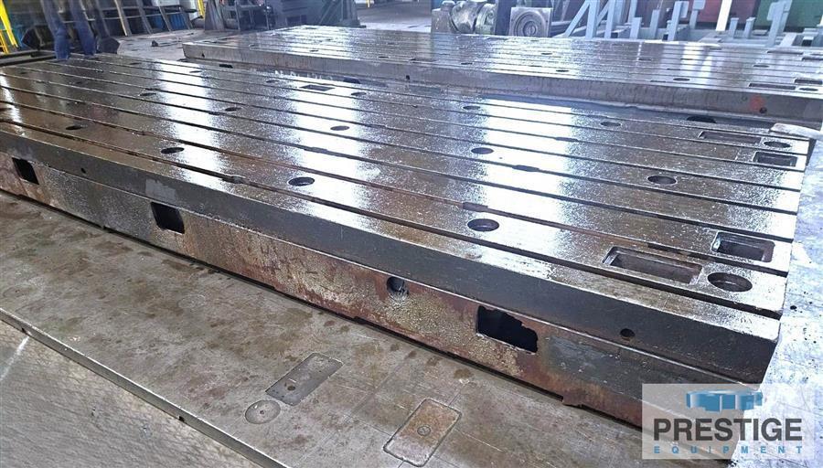 Width 78.74" Length 236.22" Thickness 15.74" T-Slot Center Distance 9.874" T-Slot Center Distance from Edge 4.13" Number of T-Slots, Longitudinal 8 T-Slot Depth 2.95" T-Slot Width, Top 1.57" T-Slot Width, Bottom 2.75" Approximate Weight 25,300 Lbs Equipped With: T-Slotted Cast Iron Construction NOTE: |