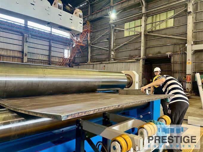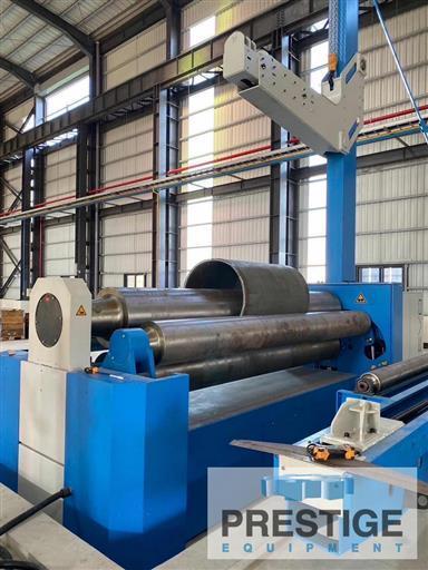Pre-Bending Capacity 1.33" Rounding Capacity 1.49" Surface Length of Rolls 165.35" Top Roll Diameter 21.25" Bottom Roll Diameter 19.68" Side Roll Diameter 14.37" Min. Bending Dia. (Top Roll 21.25") 23.42" Min. Bending Dia. (Top Roll 14.5") 16.14" Operating Speed 0-314 IPM Main Drive Motor 73.75 HP Overall Dimensions (LxWxH) 294" x 82" x 95" Approximate Shipping Weight 77,200 Lbs Equipped With: BENDtronic CNC Control with 21.5" Touch Screen Display Autonomous Bending Package Installed Remote Access Service for Online Diagnosis VSA Technology (Allows Bending of Thicker Plates and Samller Diameters) Automatic Pressure Compensation Between Top and Bottom Roll Electro-Mechanical Holding System for Rotation of Top Roll Automatic Protection of Hydraulic System against Overload Continuous Pressure Adjustment for Bottom Roll Tilting of Bottom and Both Side Rolls for Cone Bending Upper Plate Supporting Device Lateral Side Supporting Device Plate Table Infeed 4-Roll Machine Design NOTE: Brand New, Customer Lost Job |