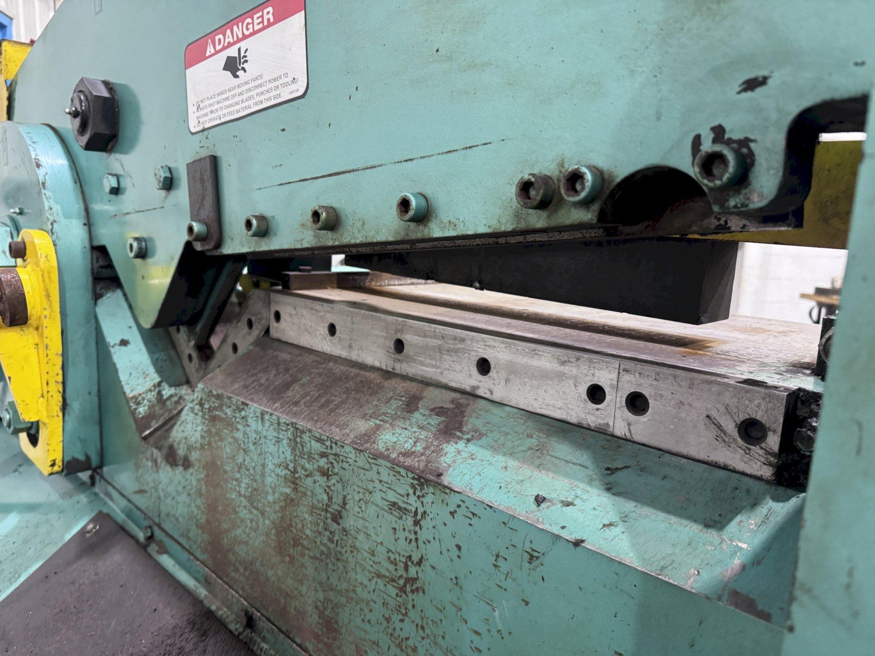 SERIAL ................................ 1100 MODEL ................................. P120 YEAR NEW .............................. 2006 PUNCHING CAPACITY ..................... 120 TONS PUNCH DIAMETER THROUGH PLATE SIZE ..... 1-1/2" THRU 1" DEPTH OF THROAT ....................... 12" STROKE ................................ 5-1/4" OPEN HEIGHT ........................... 15-1/2" PLATEN TABLE .......................... 21" X 14-1/2" SHEARING CAPACITY ANGLES .............. 6" X 6" X 5/8" PLATE ................................. 20" X 1/2" ROUNDS ................................ 1/2" TO 2" MAXIMUM SQUARE ................................ 1/2" TO 1-3/8" MAXIMUM BENDING ............................... 120 TONS STROKES PER MINUTE .................... 40 @ 3/4" COPER - NOTCHER ....................... 4" X 6" X 3/8 JOYSTICK CONTROLS ..................... YES PRESS BRAKE ATTACHMENT ................ YES SHEARING BACKGAUGE .................... YES NOTCHING ANGLE TABLE .................. YES OVER SIZE DIE HOLDER .................. YES HORSEPOWER ............................ 20 |