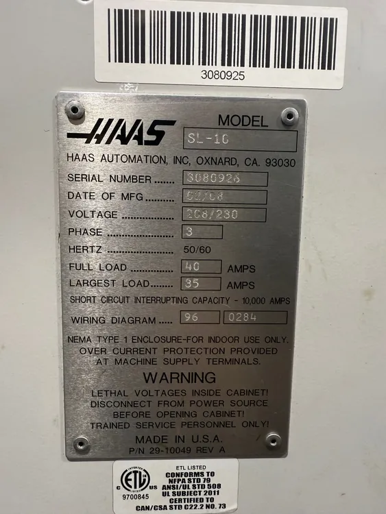 HAAS SL-10 CNC Lathe Turning Center 2008’ USA #7978