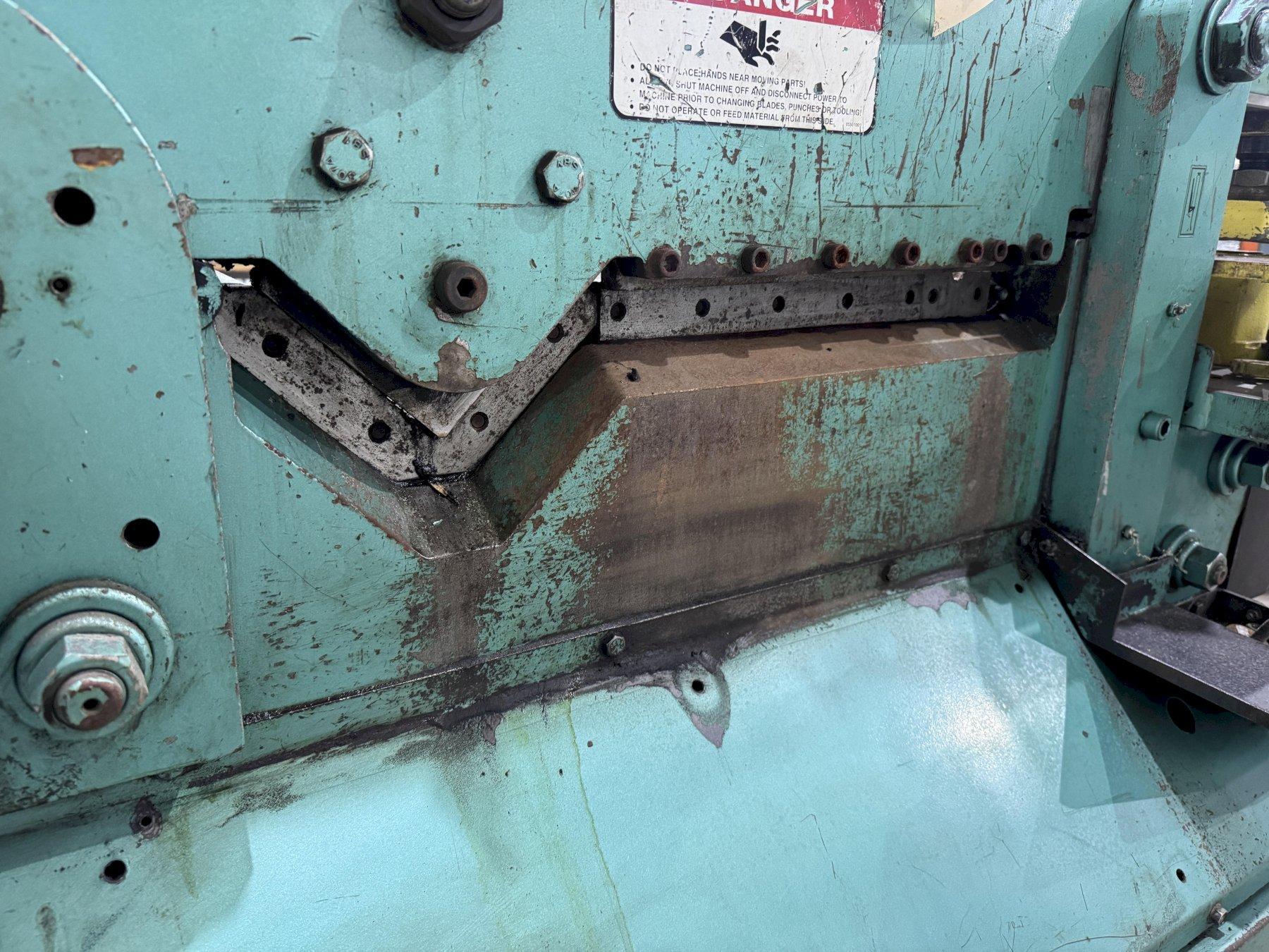 SERIAL ............................. 9738 MODEL .............................. P3 YEAR NEW ........................... 2004 PUNCHING CAPACITY .................. 50 TONS PUNCH HOLE SIZE .................... 1-1/16" THRU 1/2" PLATE PUNCH THROAT ....................... 8" CAPACITY ANGLES .................... 5" X 5" X 3/8" BAR SHEARING CAPACITY .............. 1-1/2" MAXIMUM PLATE CAPACITY ..................... 15-1/2" X 5/8" COPER .............................. YES NOTCHER ............................ YES JOYSTICK CONTROLS .................. YES ELECTRIC FOOT PEDAL ................ YES MOTOR .............................. 10 HORSEPOWER |