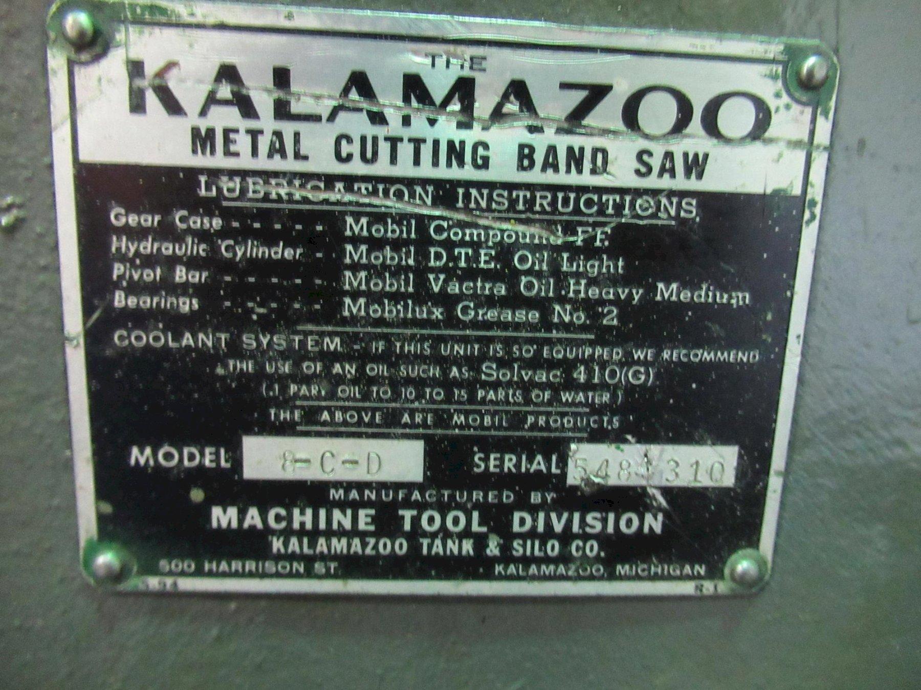 Lot 160: Kalamazoo 8-C-D Horizontal Band Saw, Portable Equipped With: Manuals and Documentation Electrics: 120 Volt, Single Phase Manufacturer: Kalamazoo Model: 8-C-D Main Unit Approx Weight: 750.00 lbs Main Unit Dimensions (in inches): Length: 66.00" Width: 22.00" Height: 42.00" Specs: Cutting Capacity @90 Degrees: Round: 8-3/4", Flat: 16", Pipe: 8" Wheel Size: 14" Blade Size: 130-1/2" x 3/4" Blade Speeds: (4) 50, 95, 160, 275 Drive Motor: 1 HP Seller Company: GB Tool Inc Seller Contact: Machinesused.com GBTool Phone: (763) 745-1166 Item Location: GB Tool Inc, 1580 93rd NE, Blaine, MN 55449 Location Contact: Machinesused.com GBTool Phone: (763) 745-1166 Inspection Date & Time: Friday, January 9, 2026 9AM-4PM Dock Door: 144" x 144" Ground | 96" x 120"H Truck Level (48"H) Dock Door Loading Dock: Ground Level, and Truck Level Doors, Paved Lot Removal Dates and Times: This item must be removed between Monday, January 19, 2026 and Wednesday, January 21, 2026