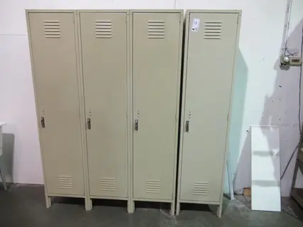 Lot 193: Metal Lockers (4) Equipped With: (1) 3 Unit Section - 54" x 18" x 78" & (1) Single Unit - 18" x 18" x 78" Manufacturer: Generic Model: Generic Main Unit Approx Weight: 0.00 lbs Main Unit Dimensions (in inches): Length: 0.00" Width: 0.00" Height: 0.00" Seller Company: GB Tool Inc Seller Contact: Machinesused.com GBTool Phone: (763) 745-1166 Item Location: GB Tool Inc, 1580 93rd NE, Blaine, MN 55449 Location Contact: Machinesused.com GBTool Phone: (763) 745-1166 Inspection Date & Time: Friday, January 9, 2026 9AM-4PM Dock Door: 144" x 144" Ground | 96" x 120"H Truck Level (48"H) Dock Door Loading Dock: Ground Level, and Truck Level Doors, Paved Lot Removal Dates and Times: This item must be removed between Monday, January 19, 2026 and Wednesday, January 21, 2026