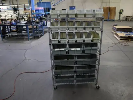 Lot 328: Rolling Wire Rack, (7) Shelves with Plastic Bins 36"x14"x55" Manufacturer: Generic Model: Generic Main Unit Approx Weight: 0.00 lbs Main Unit Dimensions (in inches): Length: 0.00" Width: 0.00" Height: 0.00" Seller Company: Aljon Tool, Inc. Seller Contact: Machinesused.com Aljon Phone: (763) 745-1166 Item Location: Aljon Tool, Inc., 15700 28th. Ave. No., Plymouth, MN 55447 Location Contact: Machinesused.com Aljon Phone: (763) 745-1166 Inspection Date & Time: Thursday-Friday, February 19-20, 2026 9AM-4PM Dock Door: 12' x 14' H Door Ground Level Doors Loading Dock: Ground Level and Truck Cock Level Doors Removal Dates and Times: This item must be removed between Monday, March 2, 2026 and Friday, March 6, 2026