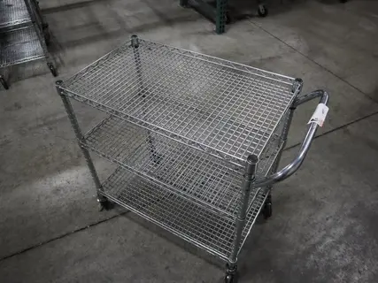 Lot 457: Seville Classic Chrome Wire Shop Cart - 3 Shelves Manufacturer: Generic Model: Generic Main Unit Approx Weight: 0.00 lbs Main Unit Dimensions (in inches): Length: 0.00" Width: 0.00" Height: 0.00" Seller Company: Aljon Tool, Inc. Seller Contact: Machinesused.com Aljon Phone: (763) 745-1166 Item Location: Aljon Tool, Inc., 15700 28th. Ave. No., Plymouth, MN 55447 Location Contact: Machinesused.com Aljon Phone: (763) 745-1166 Inspection Date & Time: Thursday-Friday, February 19-20, 2026 9AM-4PM Dock Door: 12' x 14' H Door Ground Level Doors Loading Dock: Ground Level and Truck Cock Level Doors Removal Dates and Times: This item must be removed between Monday, March 2, 2026 and Friday, March 6, 2026