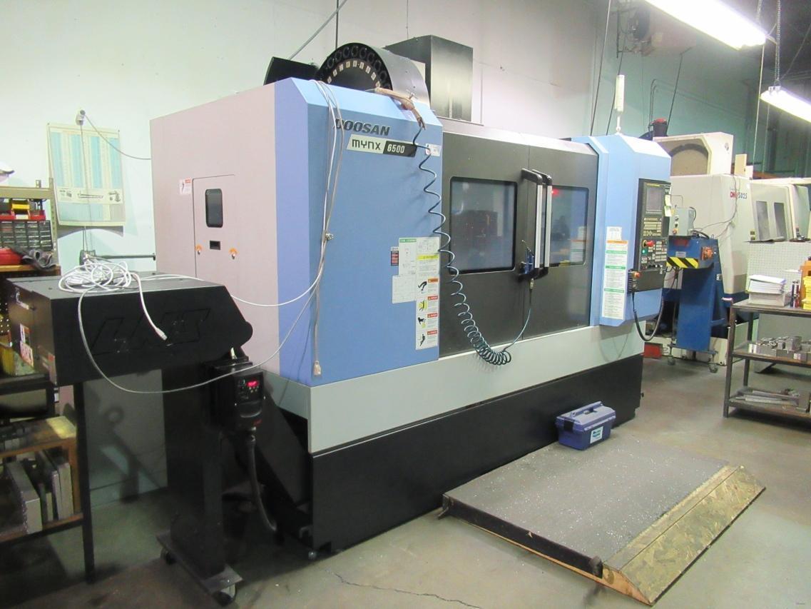 Lot 50: Doosan Mynx 6500/40 CNC Vertical Machining Center with Doosan-Fanuc i Series CNC Control, 30-ATC Thru Spindle Coolant, 12,000 RPM, CAT 40, Equipped With: Doosan-Fanuc i Series CNC Control, Thru Spindle Coolant, Doosan Easy Operation Package, Renishaw Probing System (Reader Eye Only, Not Part Probe or Tool Setter), 12,000 RPM Maximum Spindle Speeds, CAT 40, 30-Station Side Mount Twin Arm Tool Changer, LNS Chip Conveyor, Coolant Tank and Pump, KEM Oil Skimmer, Kaukan Chiller, Remote Jog Handle, Toolbox, Manuals and Documentation Electrics: 220 Volt, 3 Phase Manufacturer: Doosan Model: Mynx 6500/40 Year: 2015 Serial Number: MV0048-001802 Main Unit Approx Weight: 15500.00 lbs Main Unit Dimensions (in inches): Length: 132.00" Width: 105.00" Height: 108.00" Components: Chip Conveyor/Coolant Pan: Length: 172.00" Width: 70.00" Height: 53.00" Specs: Machine Control: Doosan-Fanuc i Series CNC Control Table Size: 55" x 26.4" Machine Travels (X/Y/Z): 50" / 26.4" / 24.6" Table Capacity: 2200 LBS Spindle Taper: CAT 40 Spindle Speeds: 12,000 RPM Rapid Traverse Rate (X/Y/Z): 1181 IPM Tool Changer Style: Side Mount Twin Arm Tool Changer Capacity: 30 Tools Spindle Drive: 21 HP Seller Company: GB Tool Inc Seller Contact: Machinesused.com GBTool Phone: (763) 745-1166 Item Location: GB Tool Inc, 1580 93rd NE, Blaine, MN 55449 Location Contact: Machinesused.com GBTool Phone: (763) 745-1166 Inspection Date & Time: Friday, January 9, 2026 9AM-4PM Dock Door: 144" x 144" Ground | 96" x 120"H Truck Level (48"H) Dock Door Loading Dock: Ground Level, and Truck Level Doors, Paved Lot Removal Dates and Times: This item must be removed between Monday, January 19, 2026 and Wednesday, January 21, 2026