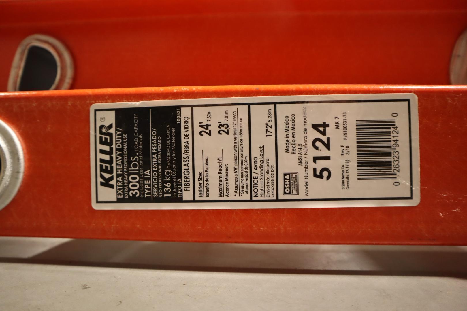 Lot 16: Keller 5124 24-Foot Fiberglass Extension Ladder Manufacturer: Keller Model: 5124 Main Unit Approx Weight: 0.00 lbs Main Unit Dimensions (in inches): Length: 0.00" Width: 0.00" Height: 0.00" Seller Company: Regal Machine - South Seller Contact: Machinesused.com JanuaryMultiShop Phone: (763) 745-1166 Item Location: Regal Machine - South, 2410 Niagara lane N, Plymouth, MN 55447 Location Contact: Machinesused.com JanuaryMultiShop Phone: (763) 745-1166 Inspection Date & Time: By Appointment Normal Business Hours Monday-Friday Dock Door: 12' x 12' Ground Level Door Loading Dock: Ground Level Removal Dates and Times: This item must be removed between Tuesday, January 27, 2026 and Friday, February 6, 2026