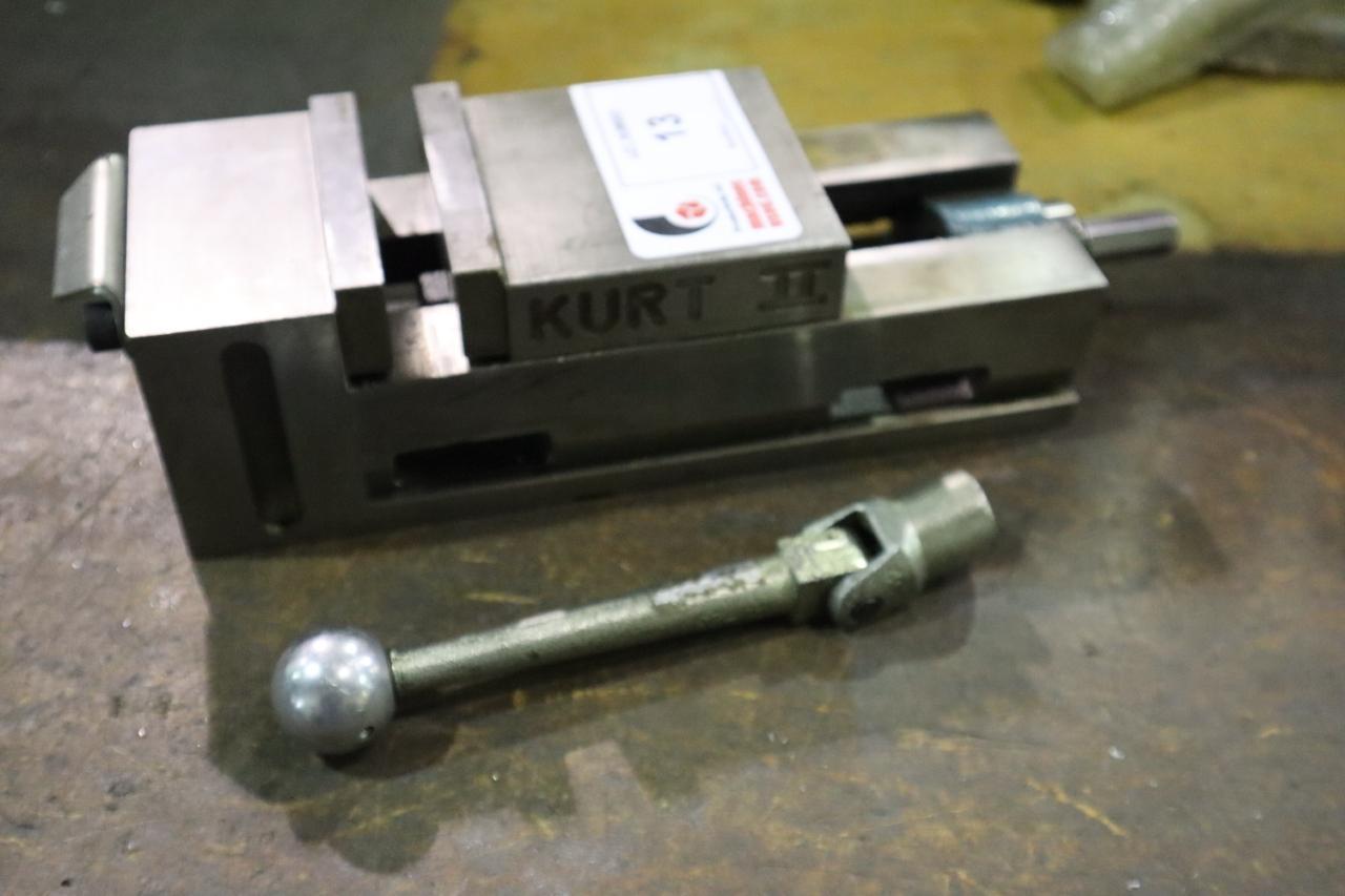 Lot 13: Kurt II PT400 4" Machine Vise, Steel Jaws, Handle, Horizontal/Vertical Mount Manufacturer: Kurt Model: PT400 Main Unit Approx Weight: 30.00 lbs Main Unit Dimensions (in inches): Length: 13.50" Width: 4.00" Height: 4.00" Specs: Max Open Between Jaws: 4" Clamping Jaws Width: 4" Seller Company: GB Tool Inc Seller Contact: Machinesused.com GBTool Phone: (763) 745-1166 Item Location: GB Tool Inc, 1580 93rd NE, Blaine, MN 55449 Location Contact: Machinesused.com GBTool Phone: (763) 745-1166 Inspection Date & Time: Friday, January 9, 2026 9AM-4PM Dock Door: 144" x 144" Ground | 96" x 120"H Truck Level (48"H) Dock Door Loading Dock: Ground Level, and Truck Level Doors, Paved Lot Removal Dates and Times: This item must be removed between Monday, January 19, 2026 and Wednesday, January 21, 2026