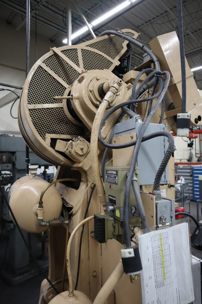 Lot 284: Bliss 21-1/2 OBI Punch Press, 60 Ton Back Geared, 3.75" Stroke, Air Clutch Brake Equipped With: Rockford Model SSC-1000 Part Revolution Controls, Inch/Continuous, Air Clutch and Brake, Dual Palm Buttons, Die Cushion, Manual Ram Adjustment. Electrics: 3 Phase Manufacturer: Bliss Model: 21-1/2 Year: 1953 Serial Number: HP 39162/HP Main Unit Approx Weight: 0.00 lbs Main Unit Dimensions (in inches): Length: 60.00" Width: 62.00" Height: 116.00" Specs: Tonnage Capacity: 60 TOn Stroke Length: 3.75" Drive Type: Back-Geared Bed Size: 22.5" x 32" Bolster Size: 22.5" x 32" Ram Size: 24" x 12.25" Seller Company: Aljon Tool, Inc. Seller Contact: Machinesused.com Aljon Phone: (763) 745-1166 Item Location: Aljon Tool, Inc., 15700 28th. Ave. No., Plymouth, MN 55447 Location Contact: Machinesused.com Aljon Phone: (763) 745-1166 Inspection Date & Time: Thursday-Friday, February 19-20, 2026 9AM-4PM Dock Door: 12' x 14' H Door Ground Level Doors Loading Dock: Ground Level and Truck Cock Level Doors Removal Dates and Times: This item must be removed between Monday, March 2, 2026 and Friday, March 6, 2026