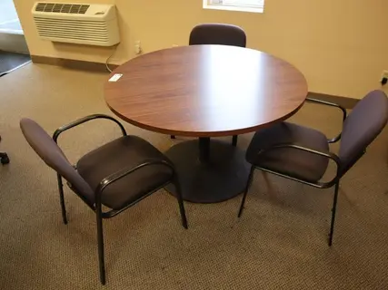 Lot 268: Round 47" Table and 3 Matching Chairs Manufacturer: Generic Model: Generic Main Unit Approx Weight: 0.00 lbs Main Unit Dimensions (in inches): Length: 0.00" Width: 0.00" Height: 0.00" Seller Company: GB Tool Inc Seller Contact: Machinesused.com GBTool Phone: (763) 745-1166 Item Location: GB Tool Inc, 1580 93rd NE, Blaine, MN 55449 Location Contact: Machinesused.com GBTool Phone: (763) 745-1166 Inspection Date & Time: Friday, January 9, 2026 9AM-4PM Dock Door: 144" x 144" Ground | 96" x 120"H Truck Level (48"H) Dock Door Loading Dock: Ground Level, and Truck Level Doors, Paved Lot Removal Dates and Times: This item must be removed between Monday, January 19, 2026 and Wednesday, January 21, 2026