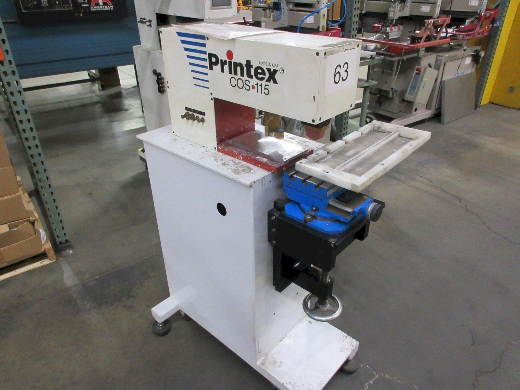 Lot 520: Printex COS-115 Pad Printing Machine Equipped With: Manually Adjustable Table Height with Cross Slide and Swivel Electrics: 110V Single Phase Manufacturer: Printex Model: COS-115 Serial Number: 70499803 Main Unit Approx Weight: 0.00 lbs Main Unit Dimensions (in inches): Length: 32.00" Width: 40.00" Height: 56.00" Seller Company: Aljon Tool, Inc. Seller Contact: Machinesused.com Aljon Phone: (763) 745-1166 Item Location: Aljon Tool, Inc., 15700 28th. Ave. No., Plymouth, MN 55447 Location Contact: Machinesused.com Aljon Phone: (763) 745-1166 Inspection Date & Time: Thursday-Friday, February 19-20, 2026 9AM-4PM Dock Door: 12' x 14' H Door Ground Level Doors Loading Dock: Ground Level and Truck Cock Level Doors Removal Dates and Times: This item must be removed between Monday, March 2, 2026 and Friday, March 6, 2026