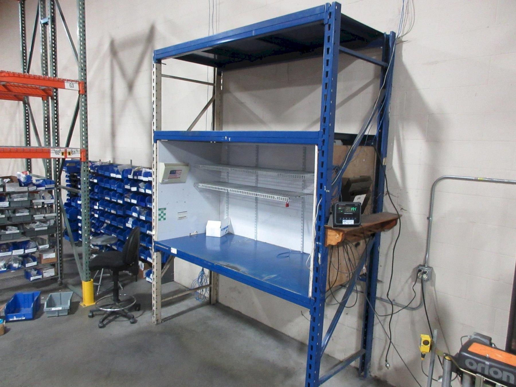 Lot 546: Pallet Rack Shipping Desk Unit, Tab and Slot Style, (2) Uprights 120" x 36", (3) 7' Shelves, with Added Shelving and Overhead Light Manufacturer: Generic Model: Generic Main Unit Approx Weight: 0.00 lbs Main Unit Dimensions (in inches): Length: 90.00" Width: 36.00" Height: 120.00" Seller Company: Aljon Tool, Inc. Seller Contact: Machinesused.com Aljon Phone: (763) 745-1166 Item Location: Aljon Tool, Inc., 15700 28th. Ave. No., Plymouth, MN 55447 Location Contact: Machinesused.com Aljon Phone: (763) 745-1166 Inspection Date & Time: Thursday-Friday, February 19-20, 2026 9AM-4PM Dock Door: 12' x 14' H Door Ground Level Doors Loading Dock: Ground Level and Truck Cock Level Doors Removal Dates and Times: This item must be removed between Monday, March 2, 2026 and Friday, March 6, 2026