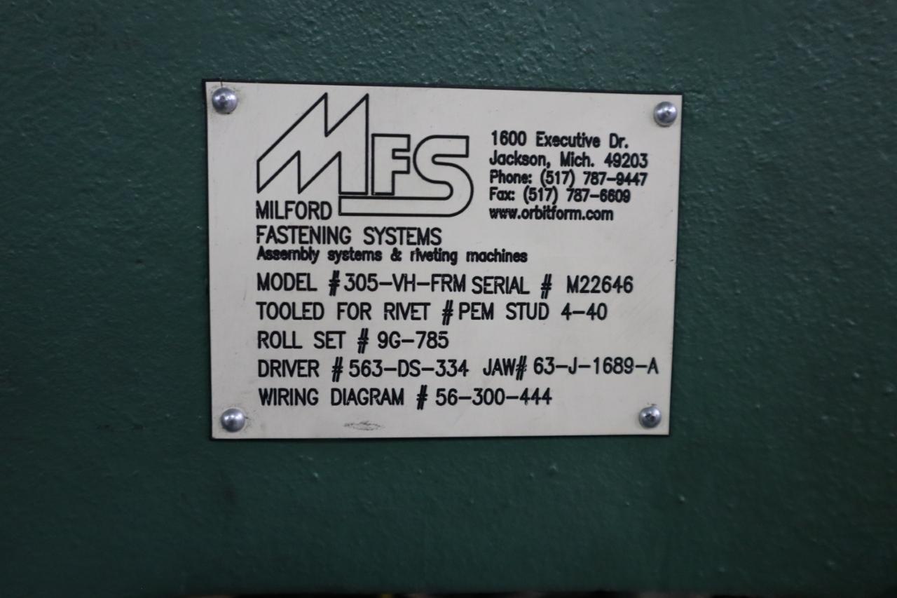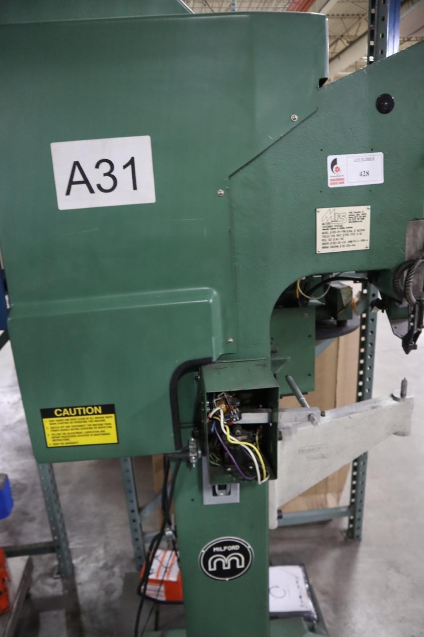 Lot 428: MIlford Orbitform #305-VH-FRM Riveter - Vibratory Feed Bowl - Needs Parts Manufacturer: Milford Orbitform Model: 305-VH-FRM Main Unit Approx Weight: 0.00 lbs Main Unit Dimensions (in inches): Length: 40.00" Width: 32.00" Height: 77.00" Seller Company: Aljon Tool, Inc. Seller Contact: Machinesused.com Aljon Phone: (763) 745-1166 Item Location: Aljon Tool, Inc., 15700 28th. Ave. No., Plymouth, MN 55447 Location Contact: Machinesused.com Aljon Phone: (763) 745-1166 Inspection Date & Time: Thursday-Friday, February 19-20, 2026 9AM-4PM Dock Door: 12' x 14' H Door Ground Level Doors Loading Dock: Ground Level and Truck Cock Level Doors Removal Dates and Times: This item must be removed between Monday, March 2, 2026 and Friday, March 6, 2026
