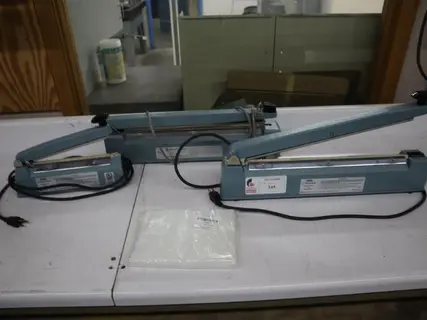 Lot 345: Impulse Bag Sealers, (1) Uline 8" (2) 16" Uline and Tew and Bags Electrics: 110V Single Phase Manufacturer: Generic Model: Generic Main Unit Approx Weight: 0.00 lbs Main Unit Dimensions (in inches): Length: 0.00" Width: 0.00" Height: 0.00" Seller Company: Aljon Tool, Inc. Seller Contact: Machinesused.com Aljon Phone: (763) 745-1166 Item Location: Aljon Tool, Inc., 15700 28th. Ave. No., Plymouth, MN 55447 Location Contact: Machinesused.com Aljon Phone: (763) 745-1166 Inspection Date & Time: Thursday-Friday, February 19-20, 2026 9AM-4PM Dock Door: 12' x 14' H Door Ground Level Doors Loading Dock: Ground Level and Truck Cock Level Doors Removal Dates and Times: This item must be removed between Monday, March 2, 2026 and Friday, March 6, 2026
