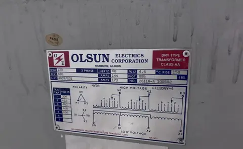 60 KVA OLSUN CLASS AA DRY TYPE TRANSFORMER: YOBRO #24590