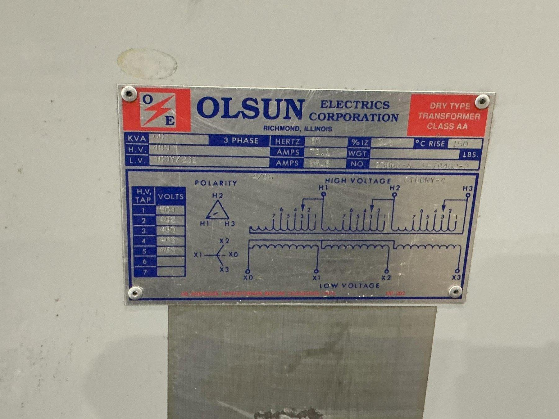 60 KVA OLSUN CLASS AA DRY TYPE TRANSFORMER: YOBRO #24590