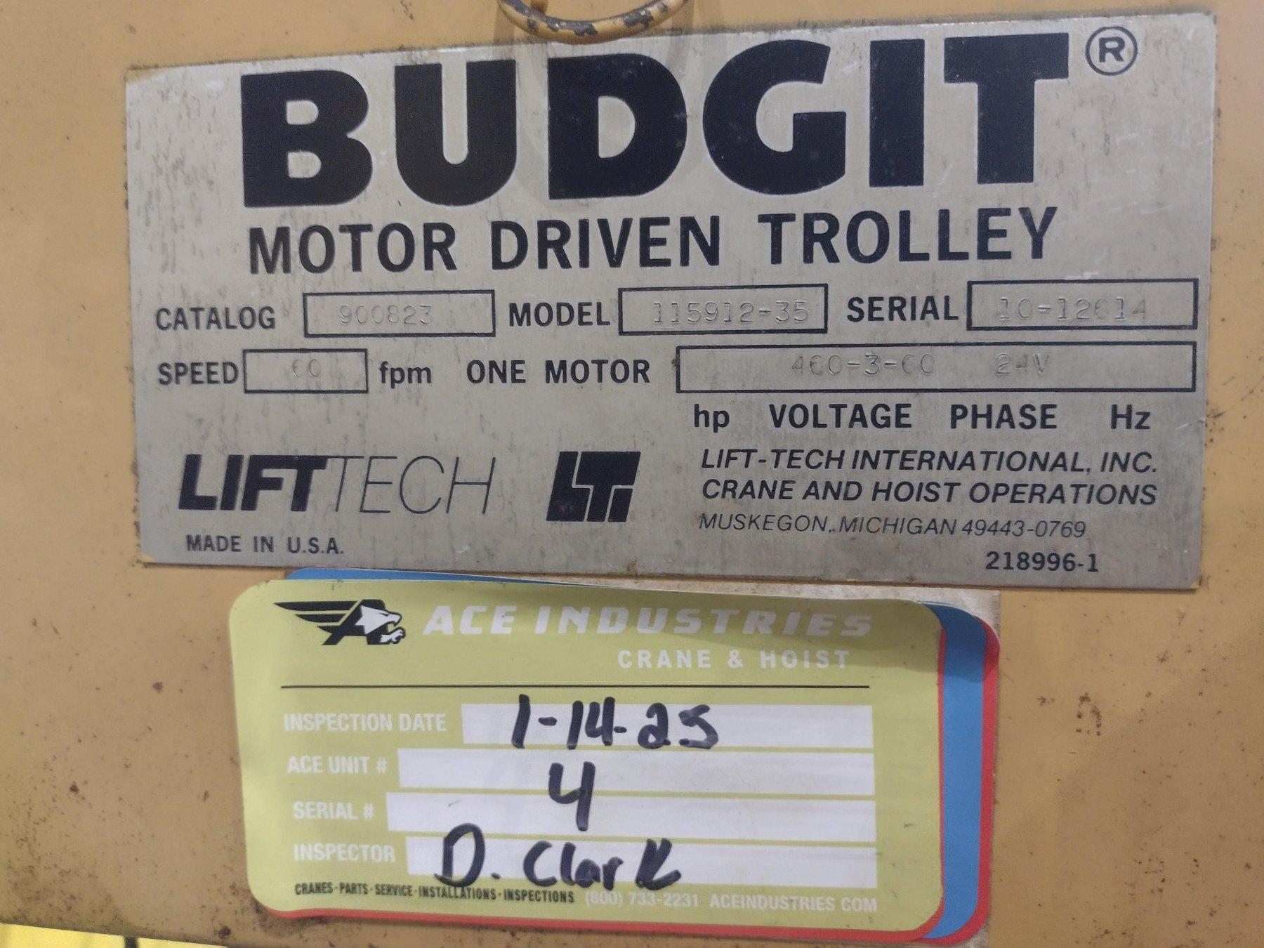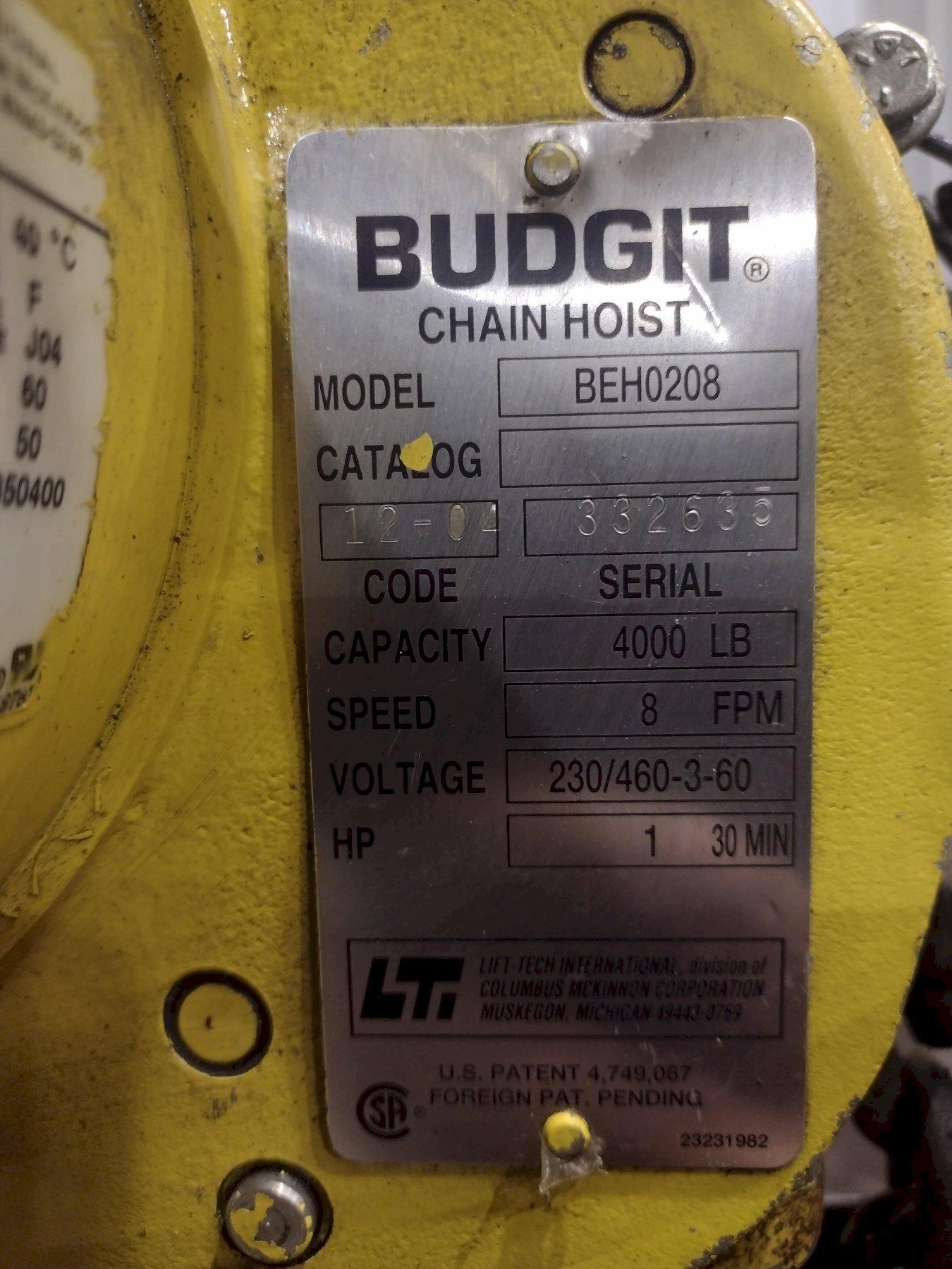 4 TON BUDGIT UNDER HUNG CHAIN HOIST. STOCK #0310922