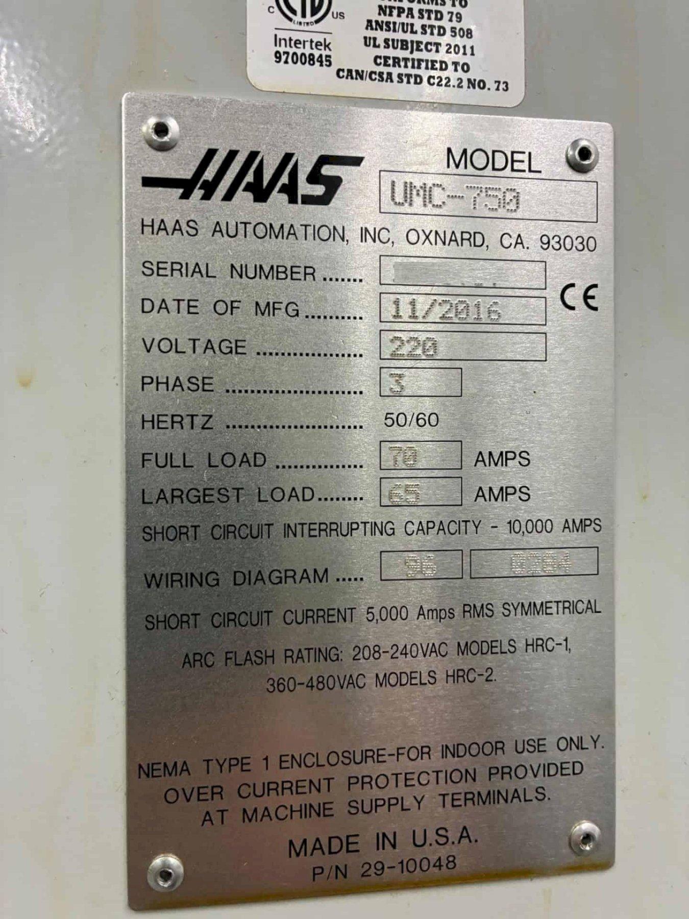 *All specifications are approximations and are subject to verification. Comes as shown in the images. Please give us a call if you have any questions before purchasing. All sales are final.* | Make: | Haas | | Model: | UMC-750 | | Year: | 2016 | | Condition: | Used – Good |