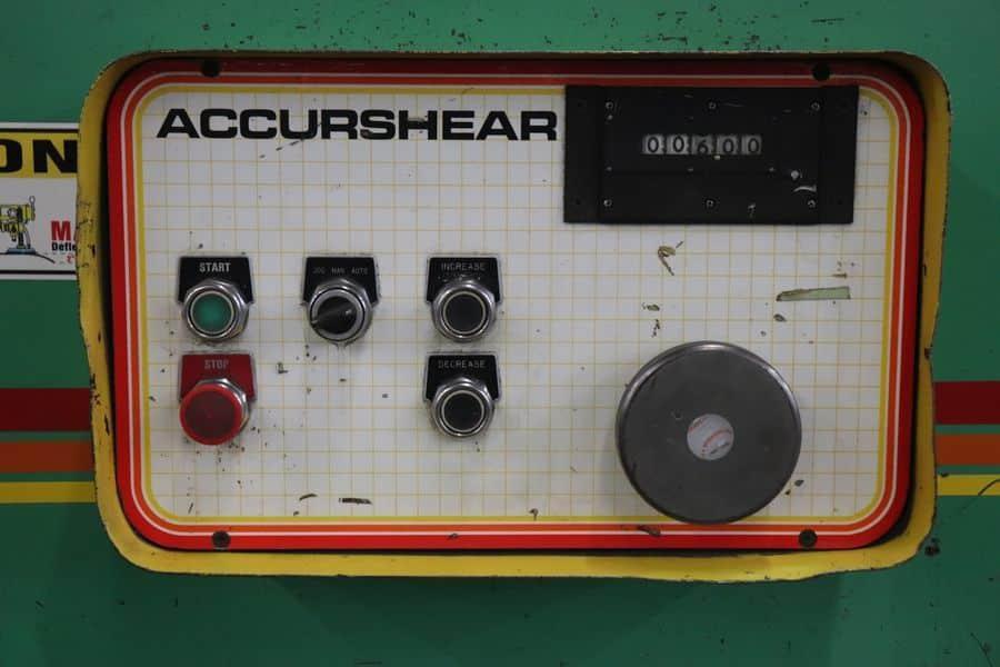 ¼” X 12’ with 36” Front Operated Power Back Gauge with Mechanical Readout, Squaring Arm and Mitering Attachment.