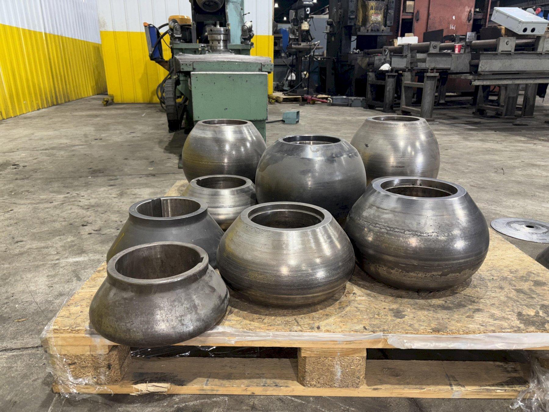 ½” X 157” Ø Dishing & Flanging Machine with Digital Readout for Roll Position, Powered Bottom Plate Carrier and Operator Station Controls.