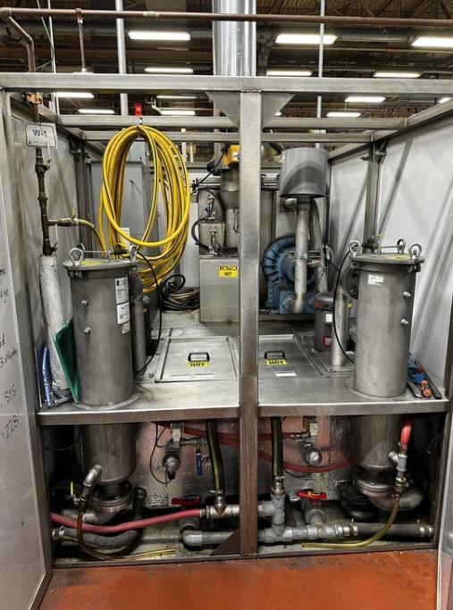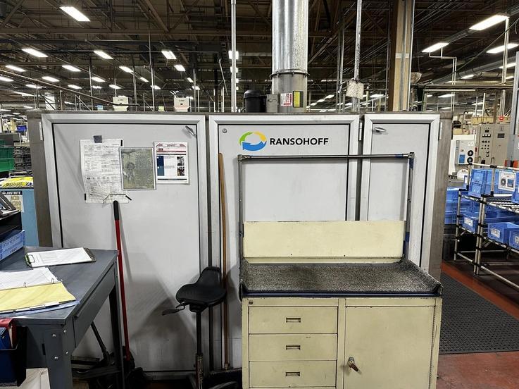 INCLUDES: Allen Bradley Controls HMI & PLC, (2) Kadon Style Processing Basket, Sump Pump Tank, Manifold Drains, 12 Stainless Tube Axial Exhaust Fan, Chip Basket (Wash Only), Three Color Stack Light and Prep Sep Oil Removal System.
