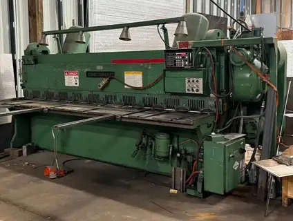 ¼” X 10’ Mechanical Squaring Shear with Cincinnati Front Operated 36” Power Backgauge, Dovetail Slots in Shear Table, Electric Foot Switch, Automatic Pressurized Lubrication, Interlocked All Steel Construction, Non-Float Inclined Ram and Extra Set of Shear Blades.