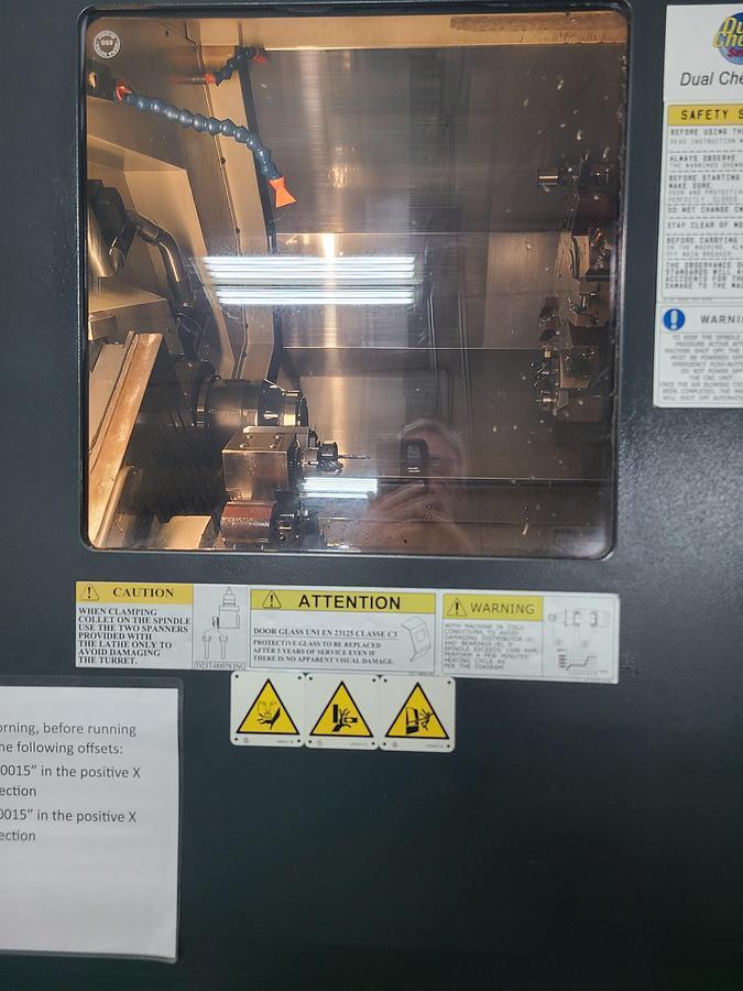 INCLUDES: Fanuc 31iB CNC Control, Tri - Mist 850 G2 Mist Collector, 12’ Edge Patriot 551 Magazine Barfeeder, LNS Magnetic Chip Conveyor, EU-1000-2 HP Coolant System, Royal QG-65 Main Spindle Collet Chuck, Royal QG-42 Sub Spindle Collet Chuck, Coolant Thru Spindle, 200mm Ejector Option and Fargo DA 51XN1/FE Transformer.
