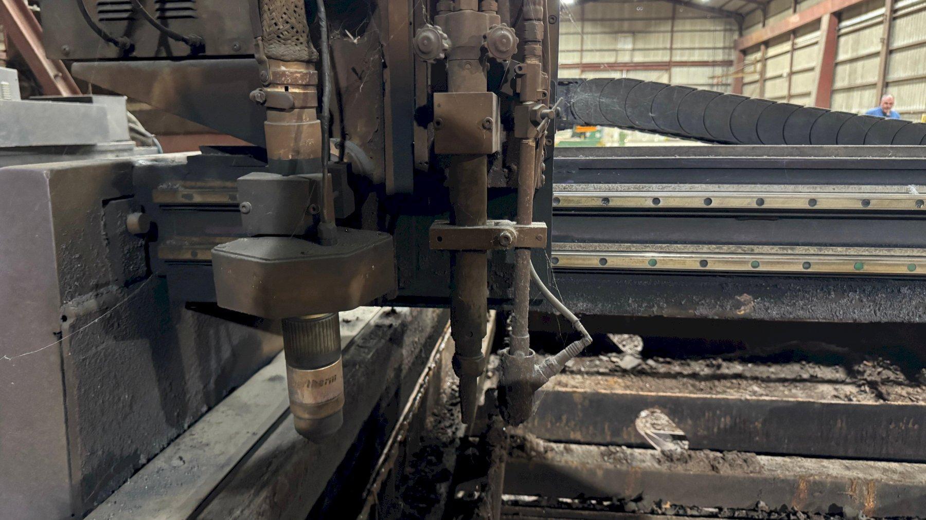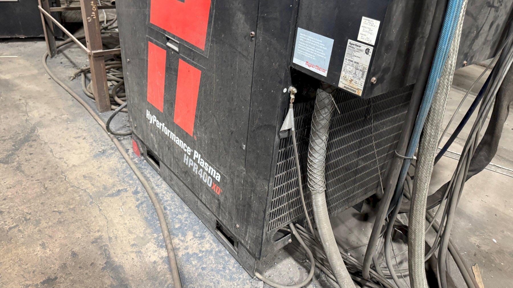 INCLUDES: Hypertherm Plasma Edge Connect CNC Control System on Remote Operator Pedestal, Hypertherm HPR400XD Plasma Source, Oxy Fuel Cutting Torch, Integrated Hornet Hydroclean Water Table and a THC with Hornet Cutting Systems Torch Lifter.