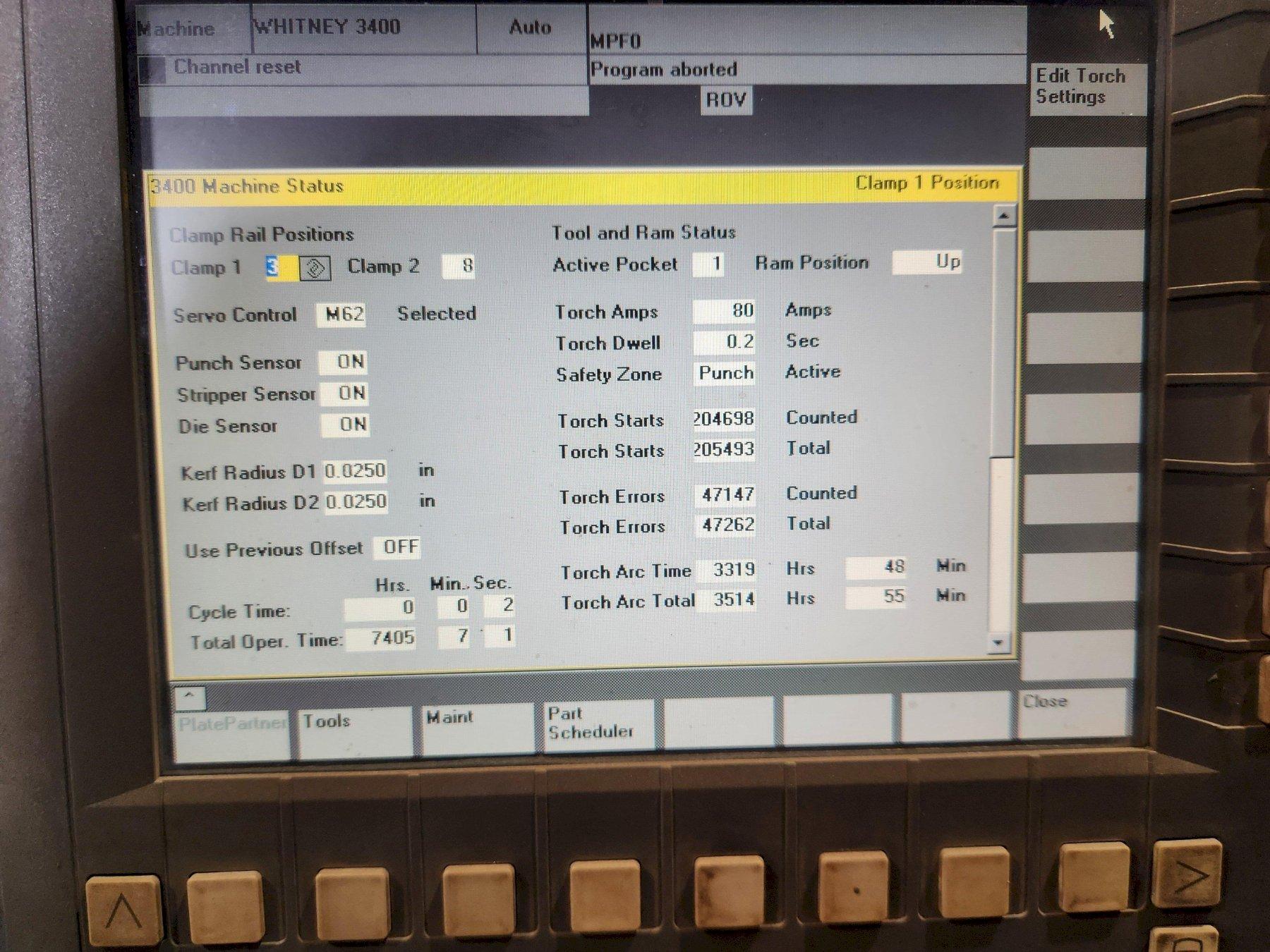 40” X 60” 40 Ton Combinating Punching & Plasma Cutting System with Siemens 840DI CNC Control, HT-2000 Plasma Cutting System and Dust Collection System.