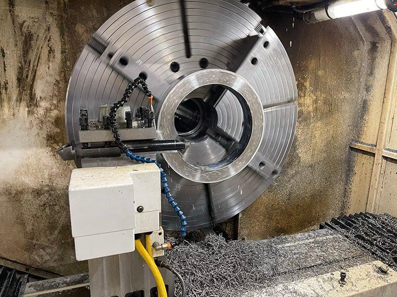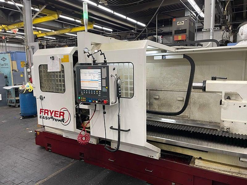40” X 80” CNC Lathe with Siemens-Touch Model 2200 CNC Control with Conversational Graphics, C - Axis Contouring & Indexing Spindle, 6” Big Bore Option, 40” 4 - Jaw Front Chuck, 20” 3 - Jaw Rear Chuck, Four Position Programmable Turret, Dumore OD Grinding Spindle w/ Dresser Fixture Above Spindle, Steady Rest, Two Speed Manual Tailstock, Flood Coolant System with Front Guards & Rear Coolant Splash Guard and a Set of Manuals.