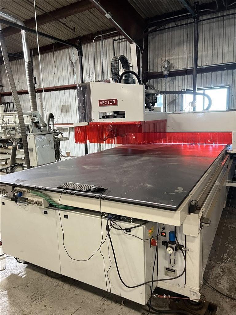 6’ X 12’ Edgebander with Vector Revolution Operating System, Quick Change Vacuum Pod, Cartridge Glue System and SideWinder System Enabling One Pass & Trimming.