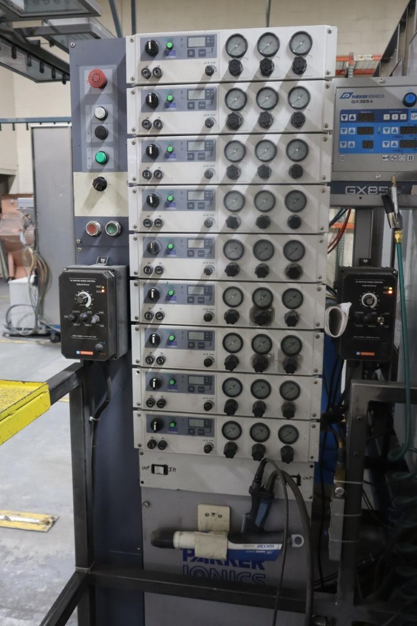 Lot 562: Parker Ionics GX7000M Automated Powder Coating Booth with 24" Wide x 48" High Windows and Top Chain Slot Equipped With: Parker Iontech Automated Powder Coating Booth 24" Wide x 48" High Windows and Top Chain Slot, (2) Manual GX355A Control Units and (2) Manual GX132 Guns, Parker Ionics GX7000M Control, (2) Variable Speed Control Units, (4) Automatic GX506N Guns (2 Per side), 25' Long Stainless Spray Booth on Wheels and Manual Track, RSH150 Powder Coating Pump with Reclaim and Filter System NOTE: Booth Requires Disassembly by Buyer for Removal Manufacturer: Parker Ionics Model: GX7000M Serial Number: 50303 Main Unit Approx Weight: 0.00 lbs Main Unit Dimensions (in inches): Length: 282.00" Width: 128.00" Height: 103.00" Seller Company: Aljon Tool, Inc. Seller Contact: Machinesused.com Aljon Phone: (763) 745-1166 Item Location: Aljon Tool, Inc., 15700 28th. Ave. No., Plymouth, MN 55447 Location Contact: Machinesused.com Aljon Phone: (763) 745-1166 Inspection Date & Time: Thursday-Friday, February 19-20, 2026 9AM-4PM Dock Door: 12' x 14' H Door Ground Level Doors Loading Dock: Ground Level and Truck Cock Level Doors Removal Dates and Times: This item must be removed between Monday, March 2, 2026 and Friday, March 6, 2026